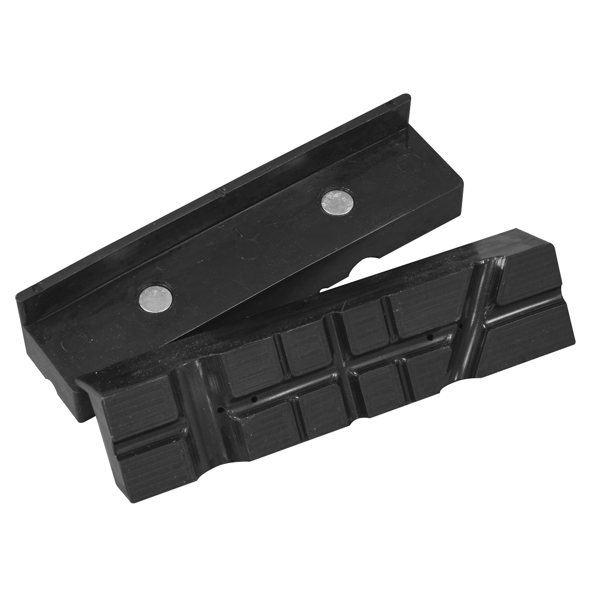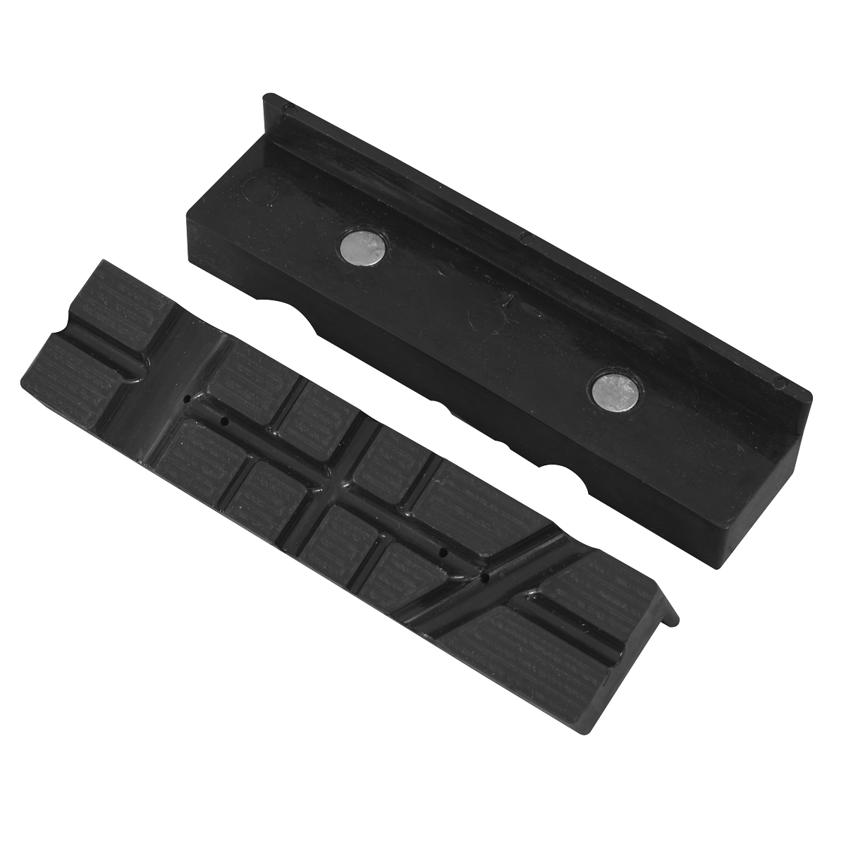 Designed to fit Sealey and other makes of bench vices. They provide excellent grip without marking or damaging soft or polished surfaces. Grooves are ideal for holding wood, metal, plastic, tubing and threaded items at 45, 90 and 180° without marking the surface. The built-in magnets adhere to the vice's metal jaws making them simple to add or remove. Supplied in pairs.