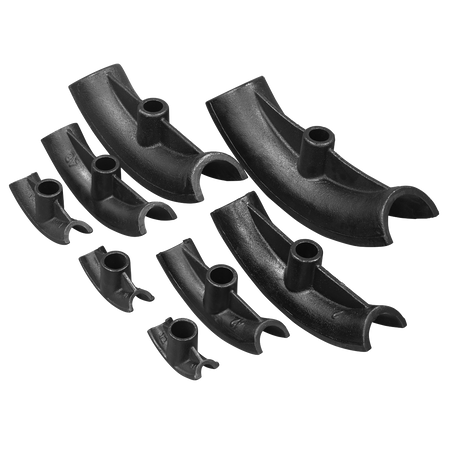 Tripod mounted pipe bender suitable for bending pipes up to 180°. Integral 15 Tonne ram. Suitable for bending DIN classified medium and heavy pipe. 2-Speed hydraulic pump gives fast pipe positioning and the power to bend 75mm pipe. Supplied with eight (15mm(1/2") - 75mm(3") interchangeable pipe dies and packed in a heavy wooden crate for easy transportation.