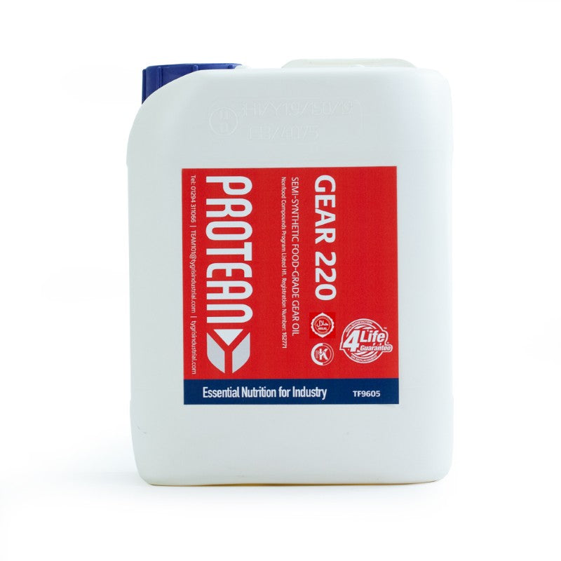 PROTEAN Gear 220 is a H1 registered semi-synthetic gear oil, suitable for the lubrication of gearboxes and reduction units, and approved for use within food and beverage processing environments.