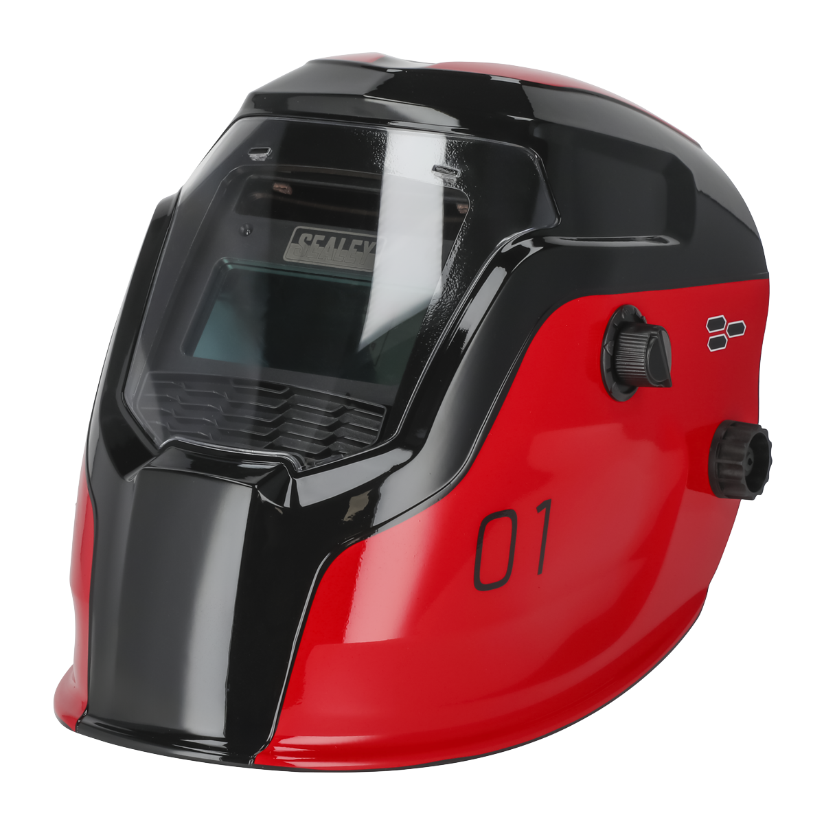 Welding helmet with adjustable shade control between 9-13. Complies with BS EN 379, BS EN 175 and DIN standards. True colour technology for improved depth perception, allowing far greater welding precision. Fully automatic switching from light to dark on striking arc. Shade is selected by a rotary knob on side of helmet. Grinding function enables user to grind without removing mask. Solar panel power supply - no batteries required. Features sensitivity and delay controls for switching light to dark. Suitable for MIG, TIG, arc/MMA welding and grinding.,• ADJUSTABLE SHADE CONTROL - Benefit from precise visual clarity and optimal protection as you weld, thanks to the seamlessly adjustable shade control ranging between 9-13. Shade control allows suitability for MIG, TIG, arc/MMA welding and grinding. Also features sensitivity and delay controls for switching light to dark.