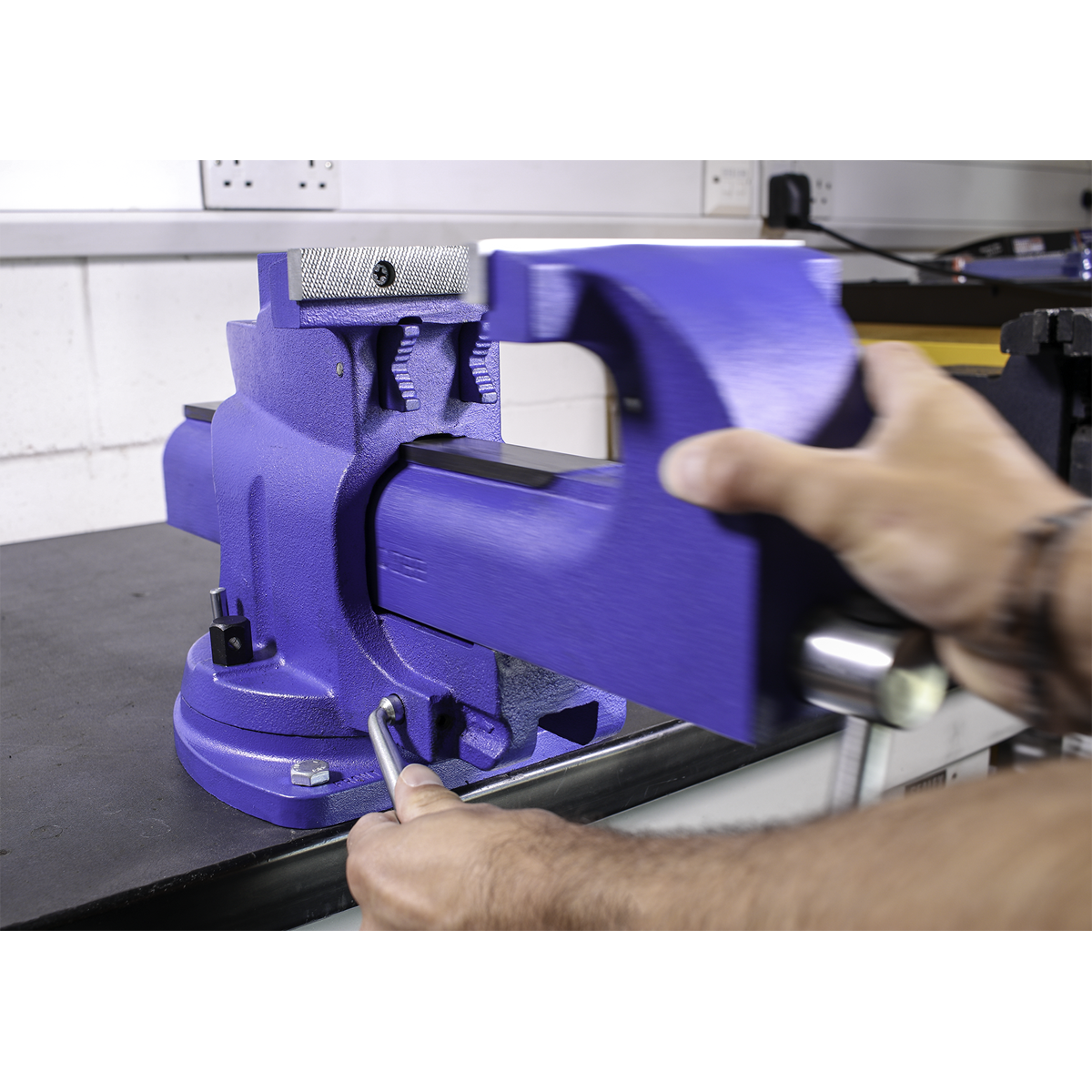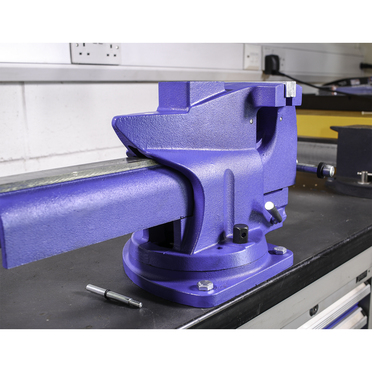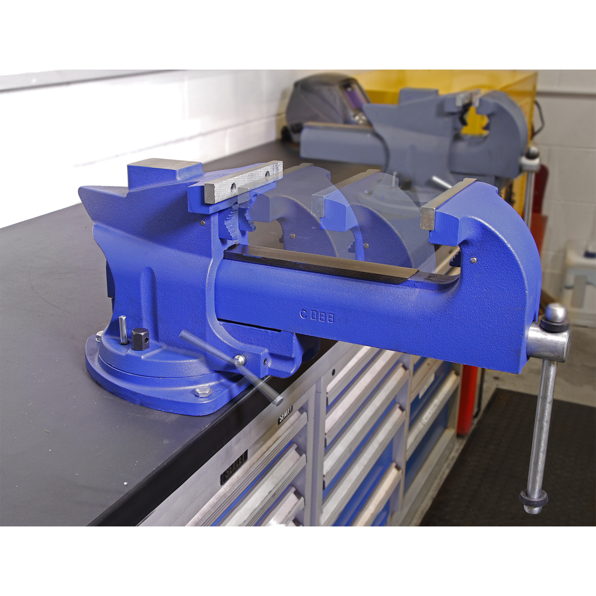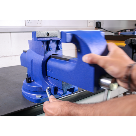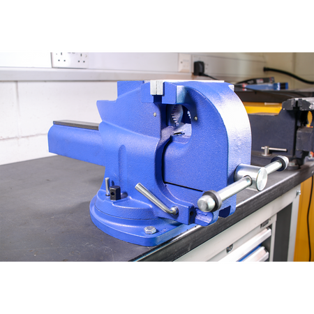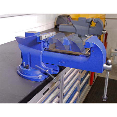 • Time-saving bench mounting swivel base vice with cast iron body.
