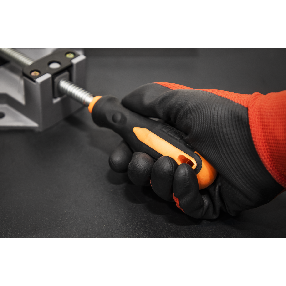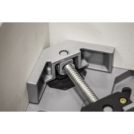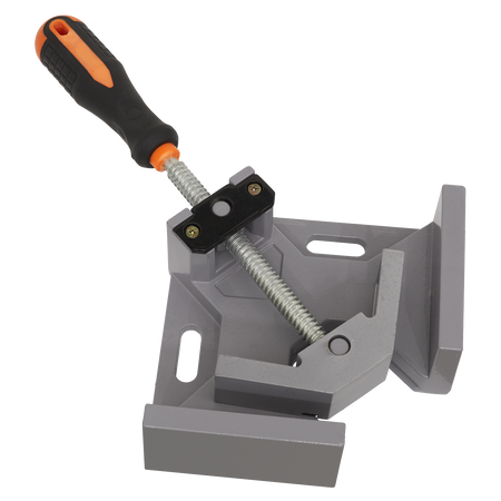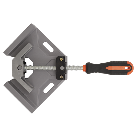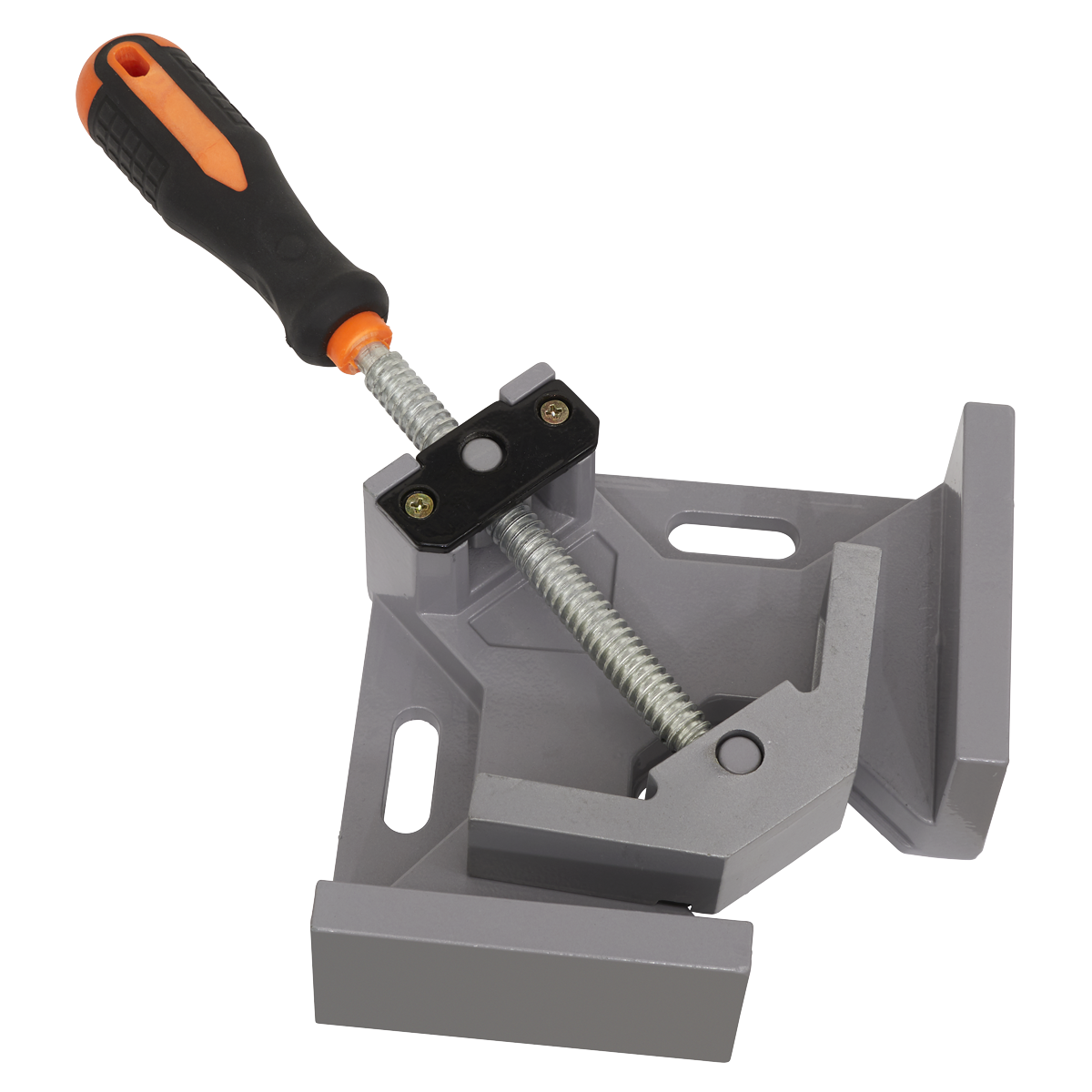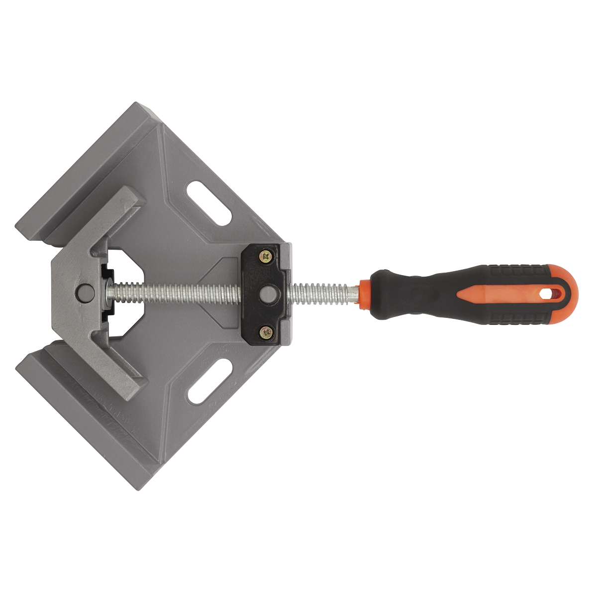 Suitable for aligning, holding and fixing materials such as wood, metal and plastic at an exact right angle. Single handle 90° corner clamp with heavy-duty aluminium alloy body and swing jaw. Rubberised anti-slip handle for ease of use.