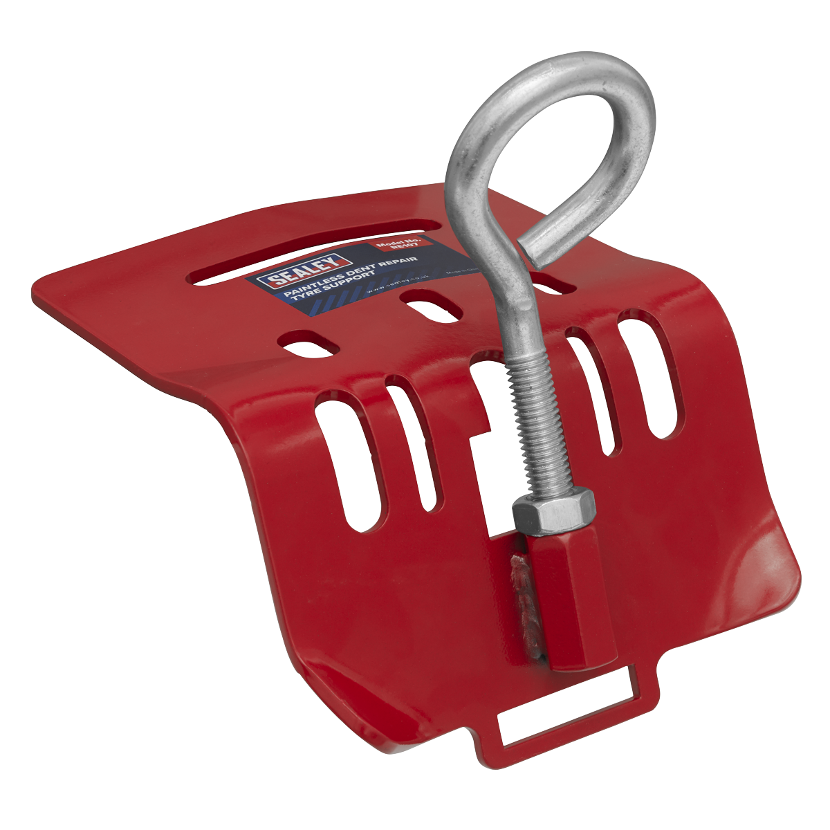 Designed for use with pushing tools and provides improved stability for wheel arch repairs. Reduces risk of damage to tyres and alloy wheels and injury to hands. Eyebolt can be adjusted to the required angle for the repair. Will accept up to approximately 35mm ball tip. Curved body maximises contact with tyre surface area for maximum support. Non-slip backing gives improved grip on the tyre.,• TYRE SUPPORT - Designed for use with pushing tools and provides improved stability for wheel arch repairs.