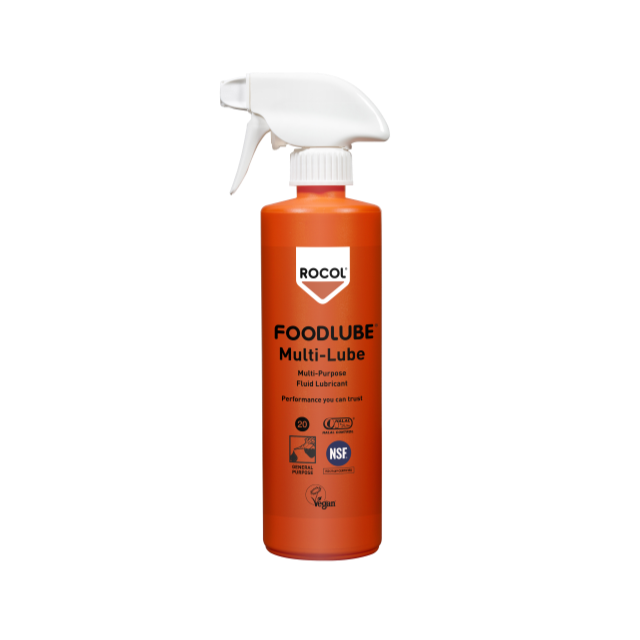ROCOL® FOODLUBE MULTI-LUBE is a non-toxic, lubricating, penetrating and water displacing lubricant. Ideal for use on chains, bearings, slides and similar mechanisms operating in food, pharmaceutical and other clean environments.