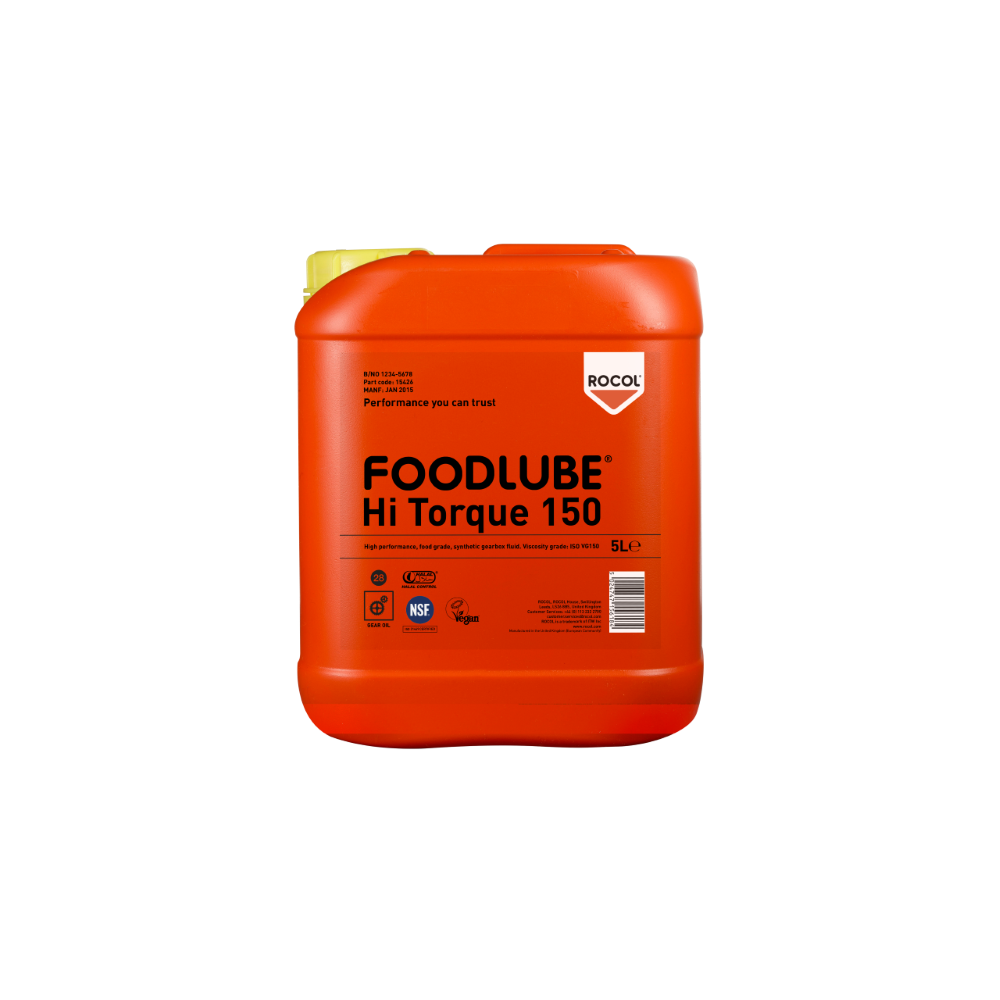 ROCOL® FOODLUBE® Hi-Torque is a range of nontoxic high perfromance synthetic gearbox lubricants are supplied in viscosity grades: ISO VG 150, 220, 320 & 460.