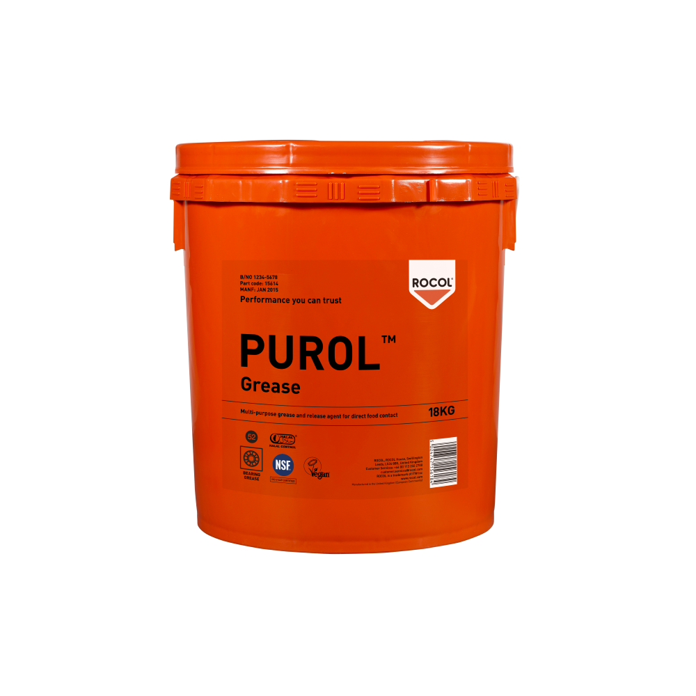 ROCOL® PUROLTM Grease is a white, non-toxic lubricant designed for the effective lubrication and protection of seals, guides, bearings and blades particularly those operating in food, pharmaceutical and other clean environments where direct food contact is inevitable. PUROL Grease is particularly suitable for seals, mincer plates, mixers and slicers where food contact cannot be avoided. PUROL is manufactured under controlled conditions necessary for the production of a 3H full food contact lubricant.