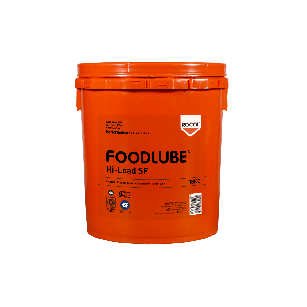 FOODLUBE Hi-Load SF is an excellent all round semifluid grease offering very good pumpability, high load carrying capability, extreme water wash off resistance and good corrosion protection.