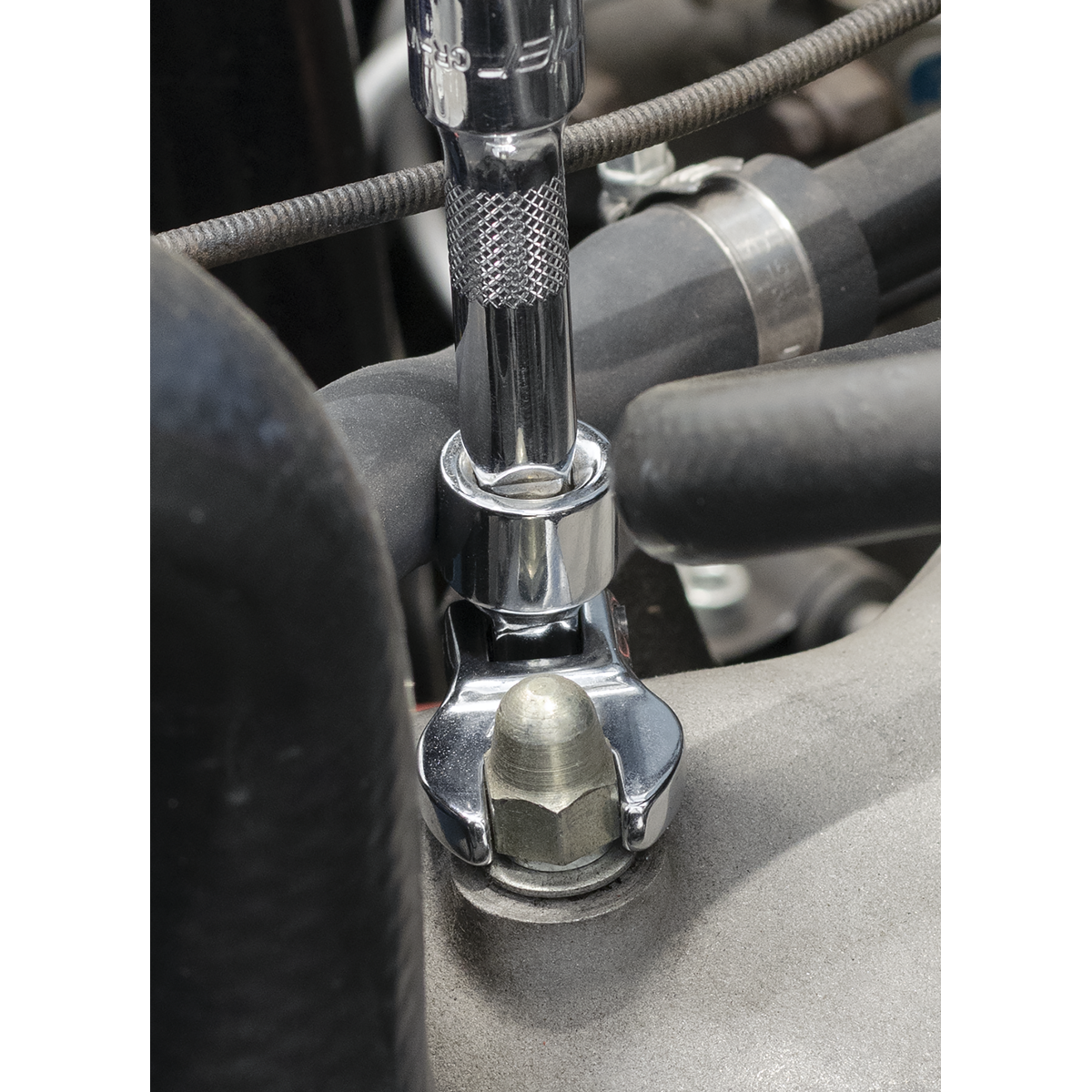 • Suitable for use with extension bars and ratchet wrenches.