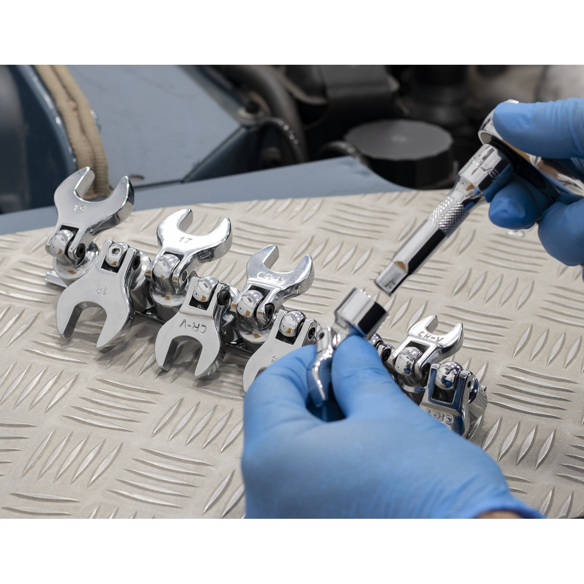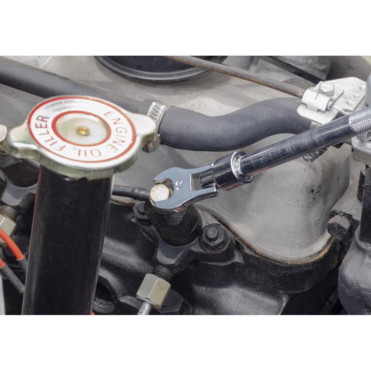 • Chrome Vanadium, flexible head crow's foot spanners.