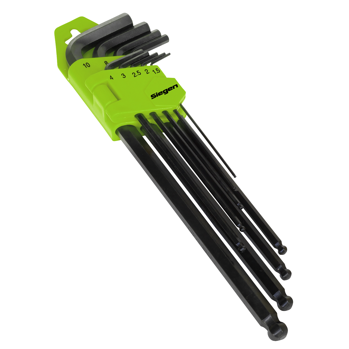 S01094 Siegen Extra-Long Ball-End Hex Key Set 9pc