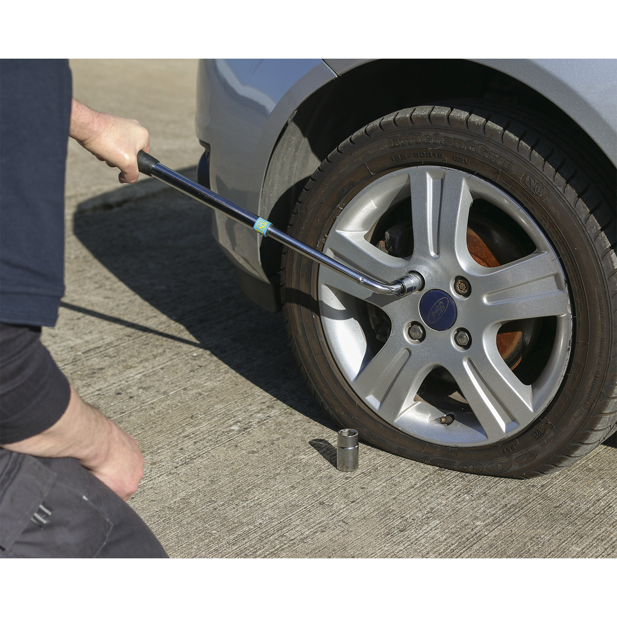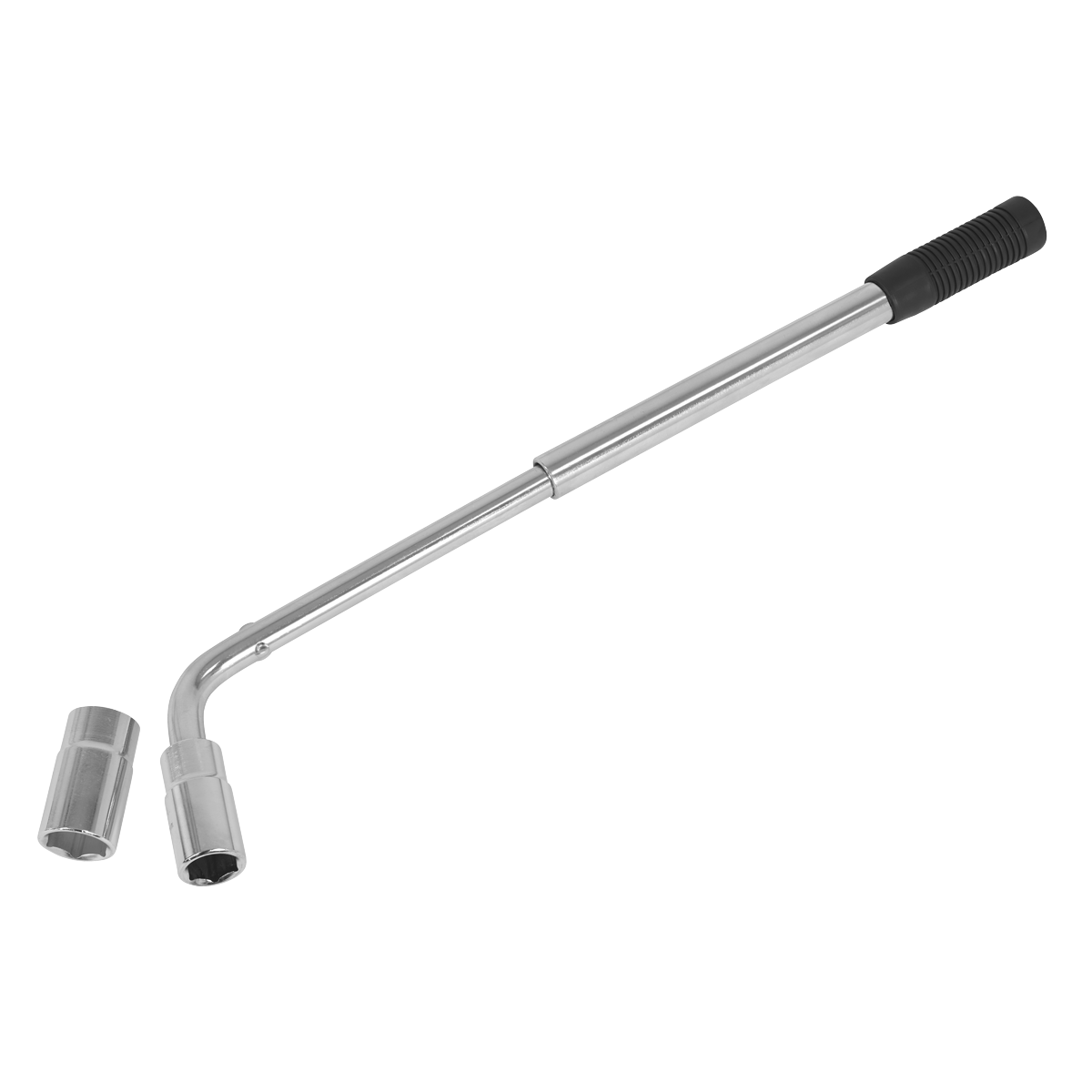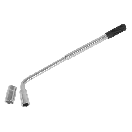 High quality steel construction with rubber grip. 1/2"Sq Drive L-bar extends from 355-520mm and gives extra leverage for stubborn fixings. Supplied with two double end sockets, 17 x 19mm and 21 x 23mm.