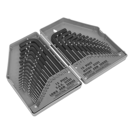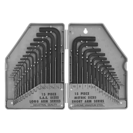 • Comprises fifteen long-arm Imperial keys and fifteen short-arm Metric keys.