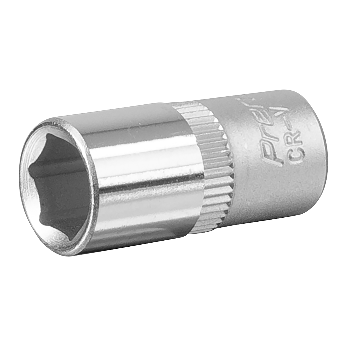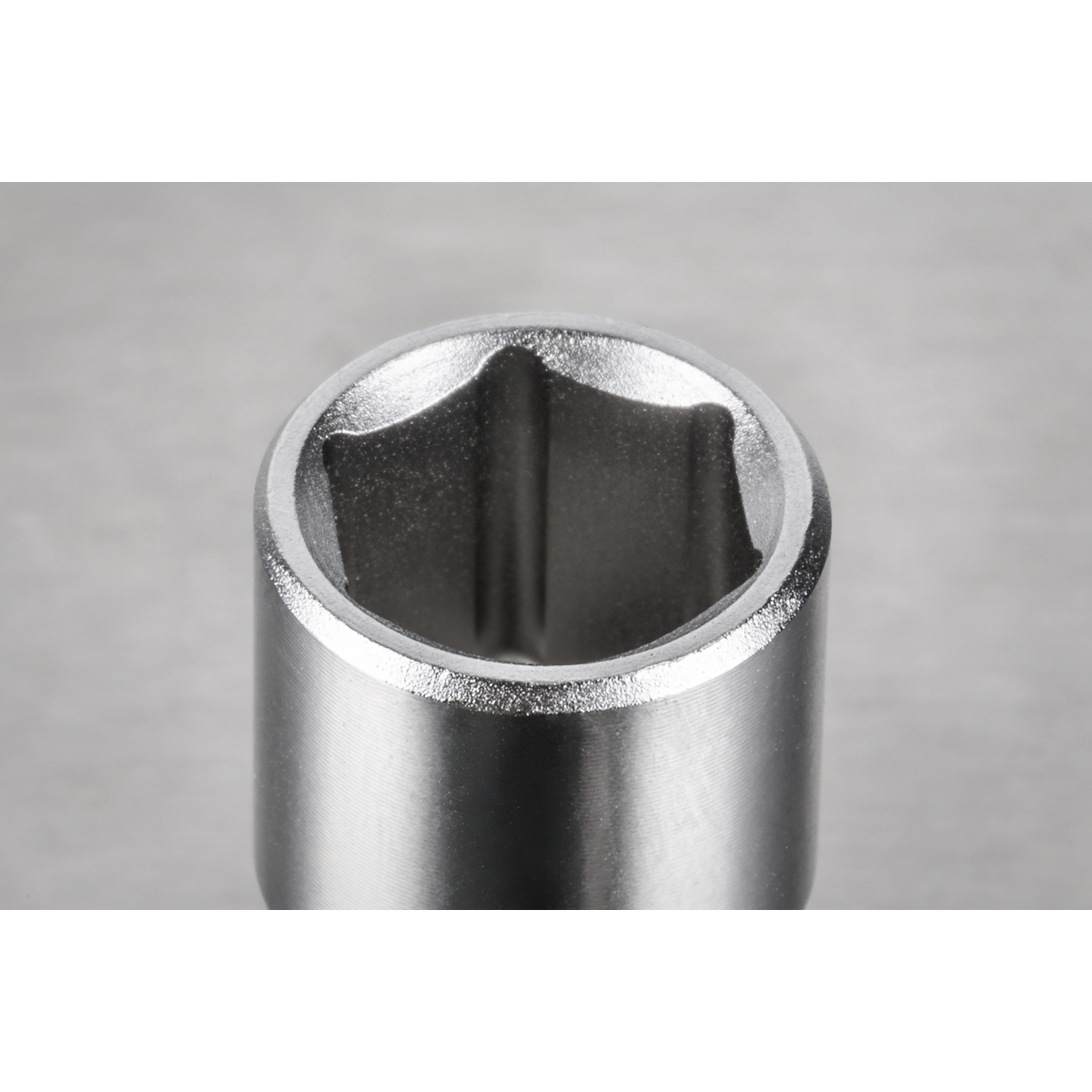 Cold-forged Chrome Vanadium steel socket. Hardened and tempered for added strength. Chrome plated in half chrome, half satin finish with knurled ring for extra grip with oily fingers. WallDrive® socket configuration.