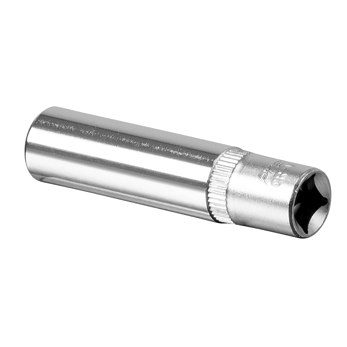 Cold-forged Chrome Vanadium steel socket. Hardened and tempered for added strength. Chrome plated in half chrome, half satin finish with knurled ring for extra grip with oily fingers. WallDrive® socket configuration.