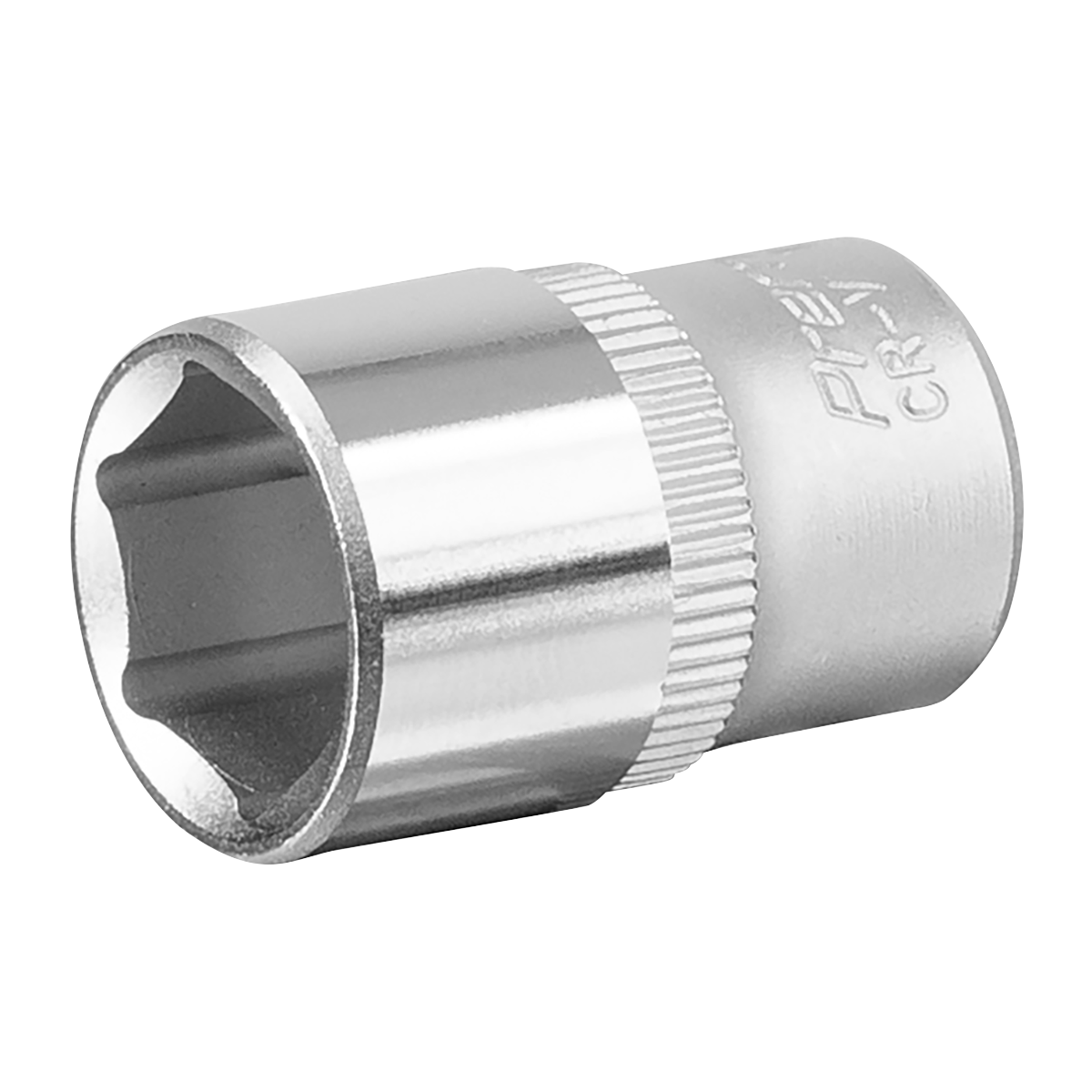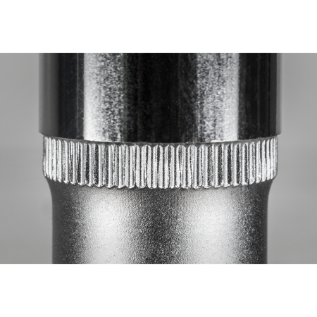 Cold-forged Chrome Vanadium steel socket. Hardened and tempered for added strength. Chrome plated in half chrome, half satin finish with knurled ring for extra grip with oily fingers. WallDrive® socket configuration.