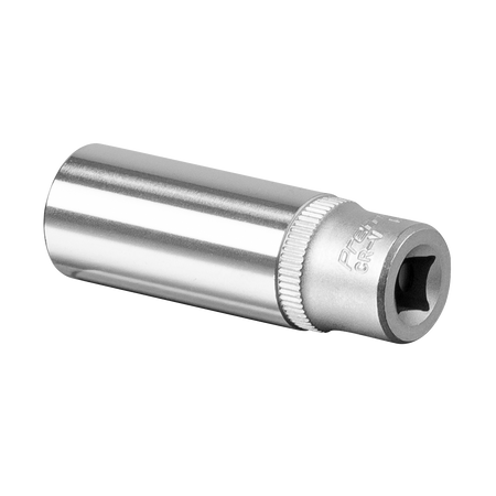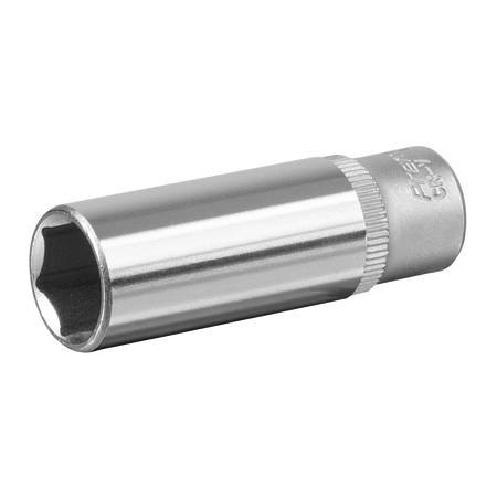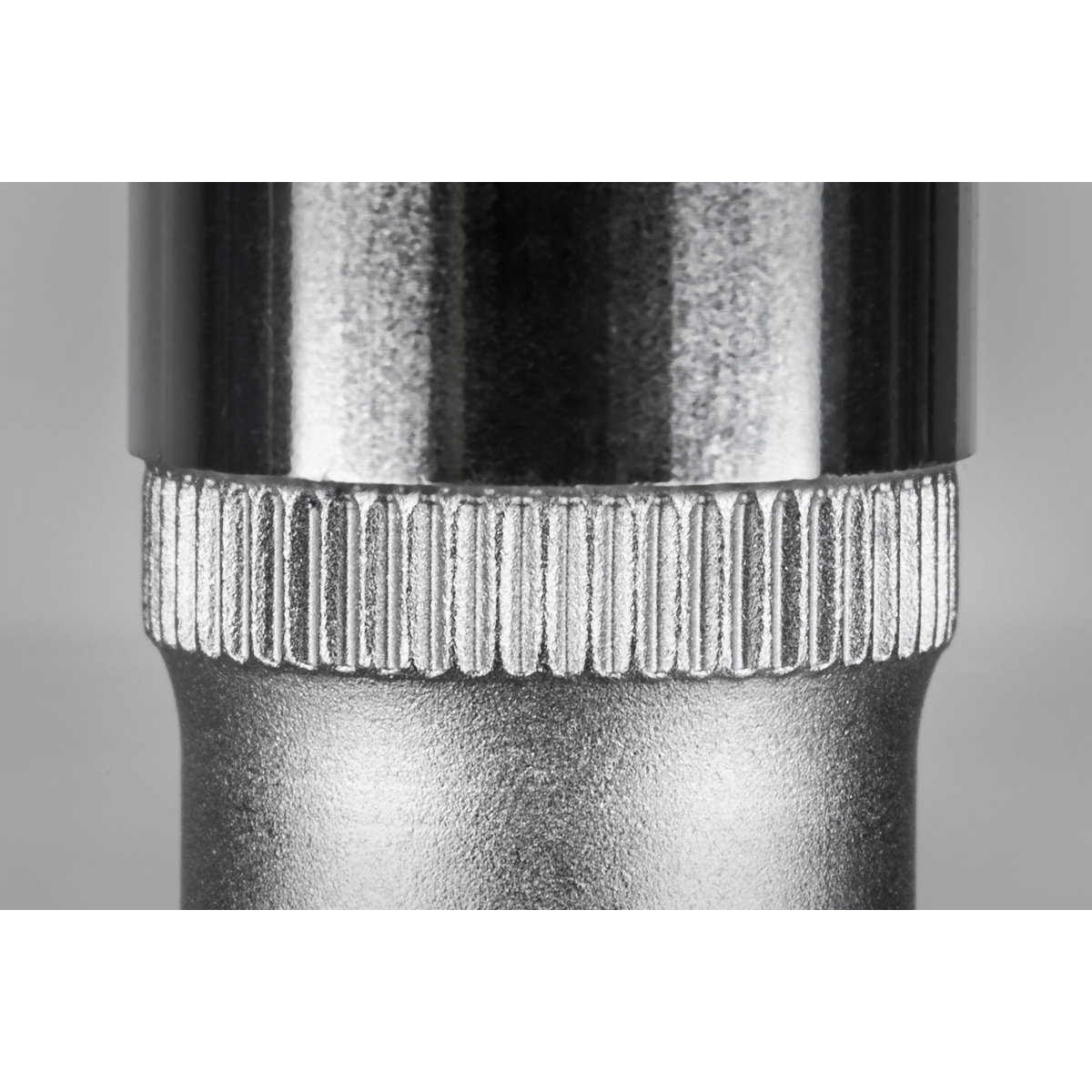 Cold-forged Chrome Vanadium steel socket. Hardened and tempered for added strength. Chrome plated in half chrome, half satin finish with knurled ring for extra grip with oily fingers. WallDrive® socket configuration.