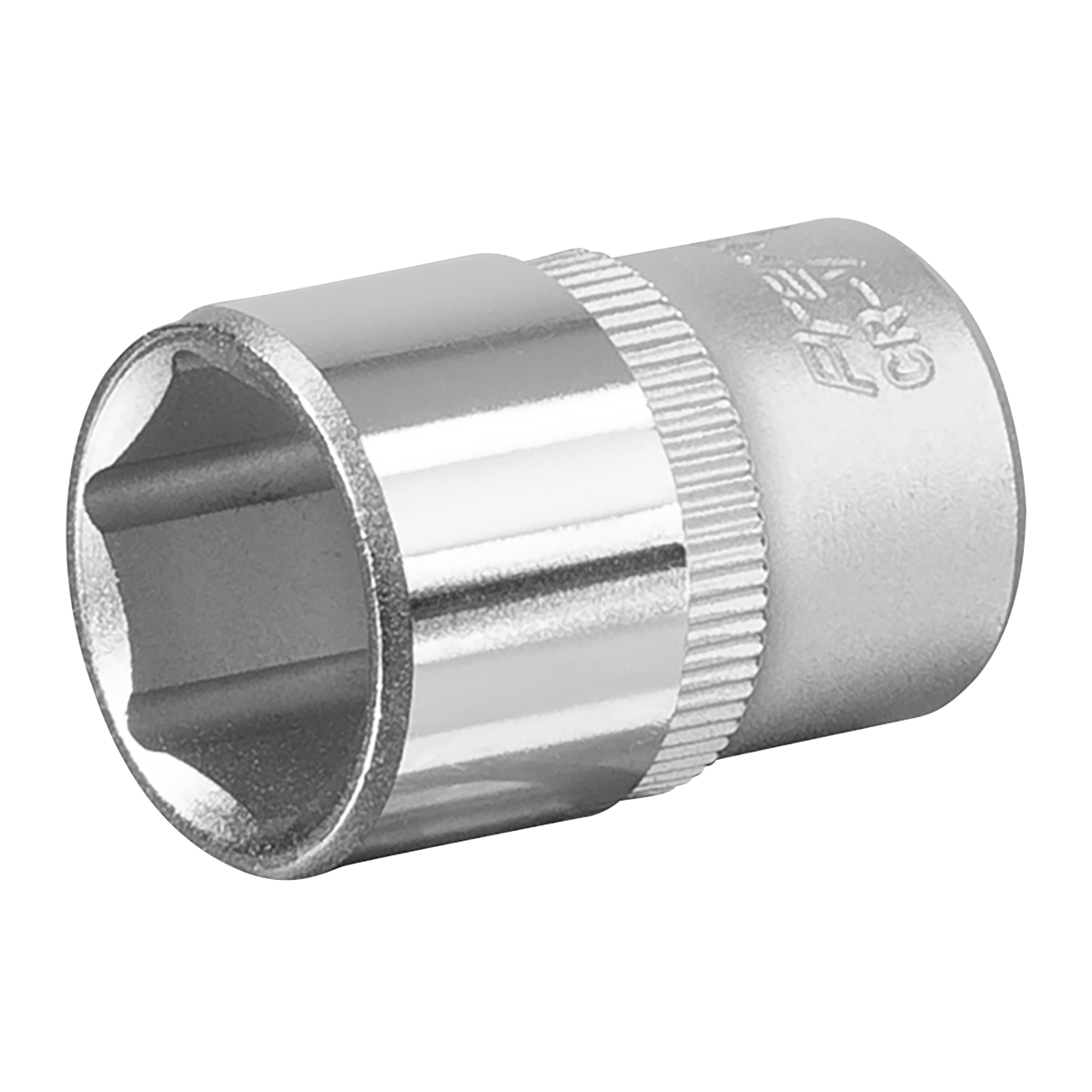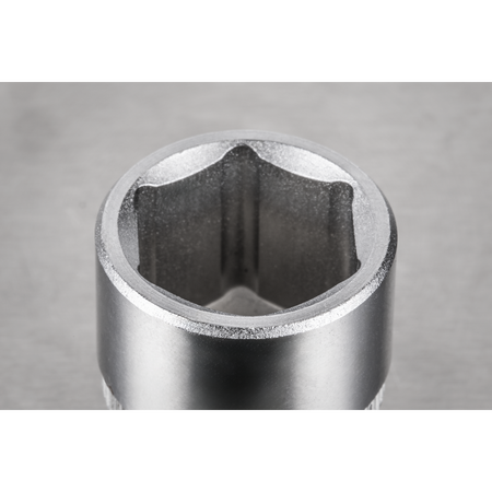 Cold-forged Chrome Vanadium steel socket. Hardened and tempered for added strength. Chrome plated in half chrome, half satin finish with knurled ring for extra grip with oily fingers. WallDrive® socket configuration.