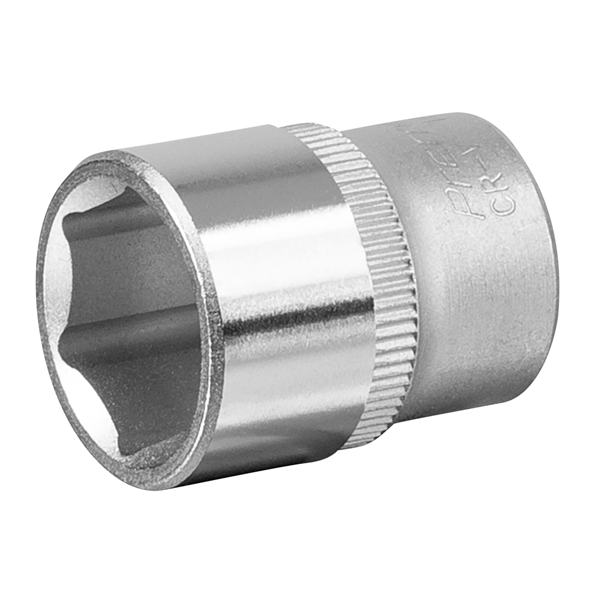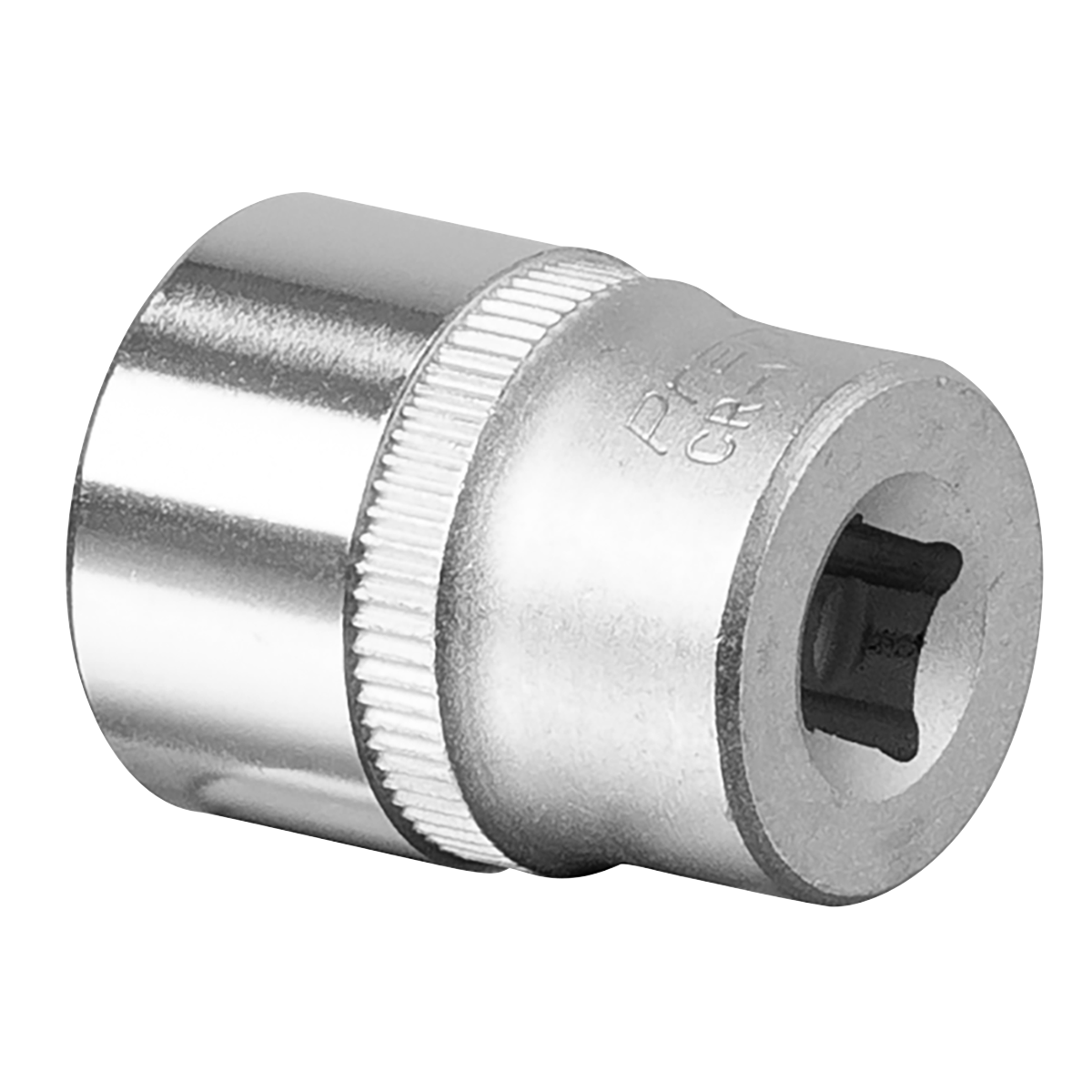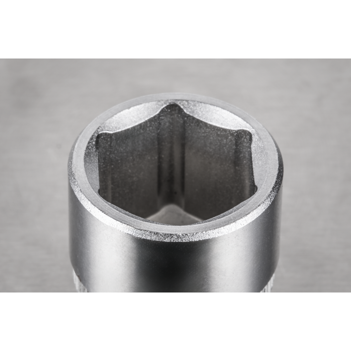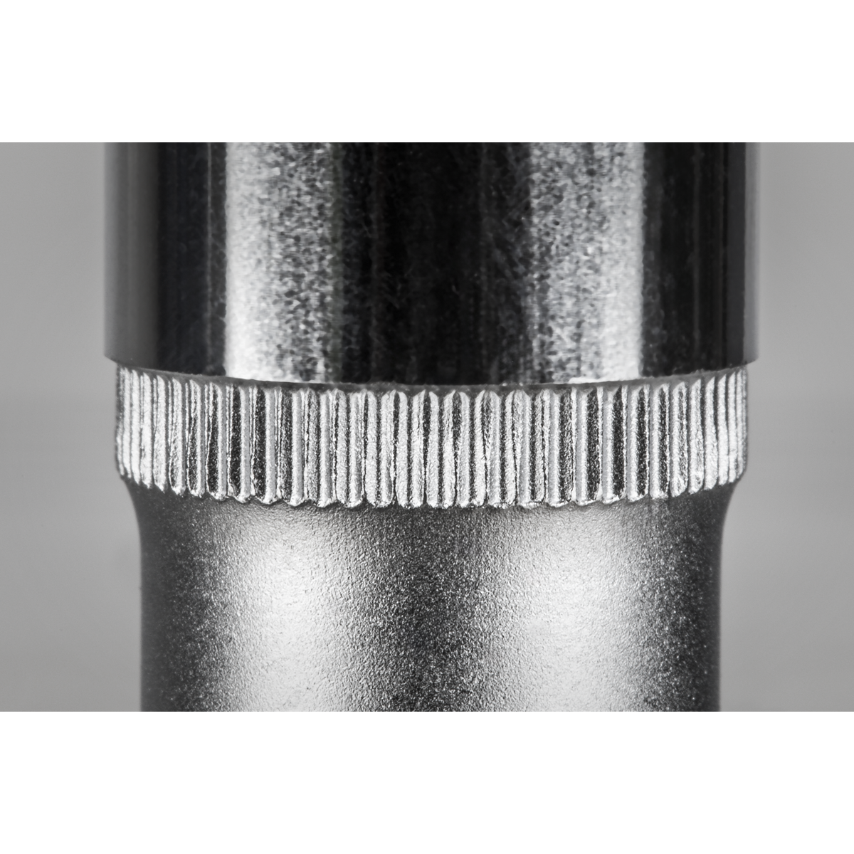 Cold-forged Chrome Vanadium steel socket. Hardened and tempered for added strength. Chrome plated in half chrome, half satin finish with knurled ring for extra grip with oily fingers. WallDrive® socket configuration.