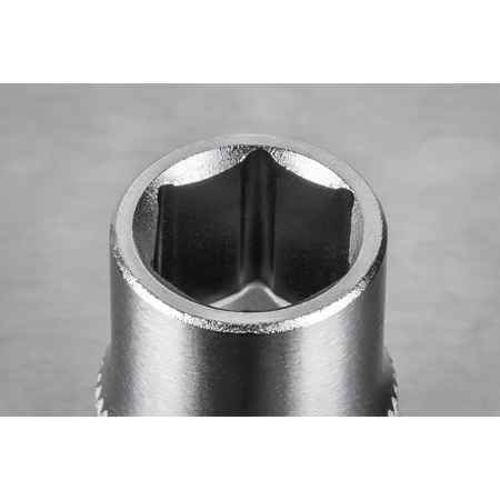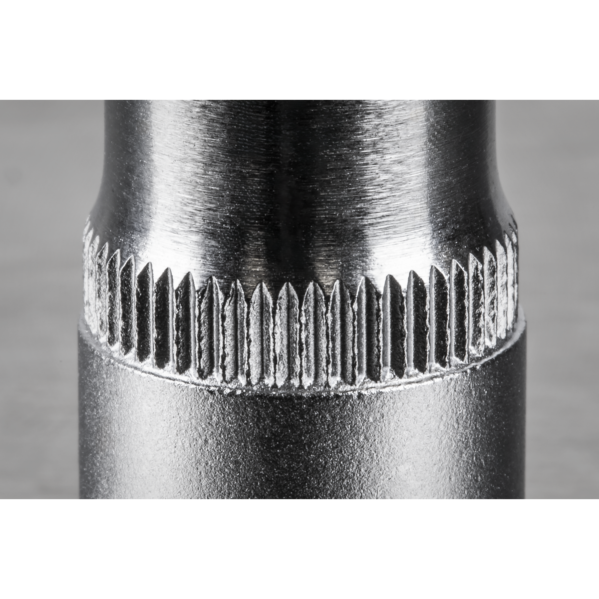 Cold-forged Chrome Vanadium steel socket. Hardened and tempered for added strength. Chrome plated in half chrome, half satin finish with knurled ring for extra grip with oily fingers. WallDrive® socket configuration.