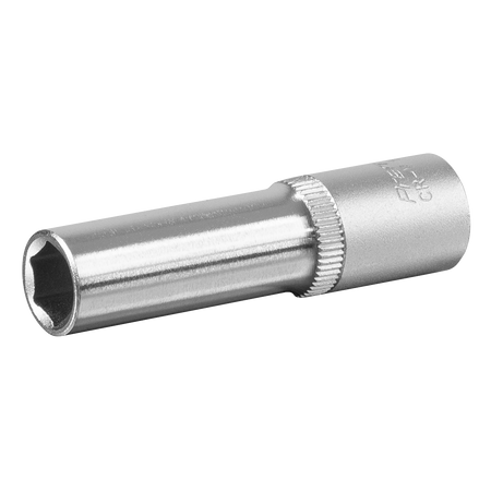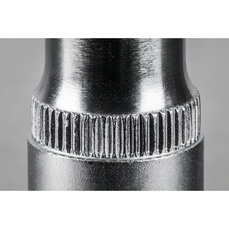 Cold-forged Chrome Vanadium steel socket. Hardened and tempered for added strength. Chrome plated in half chrome, half satin finish with knurled ring for extra grip with oily fingers. WallDrive® socket configuration.