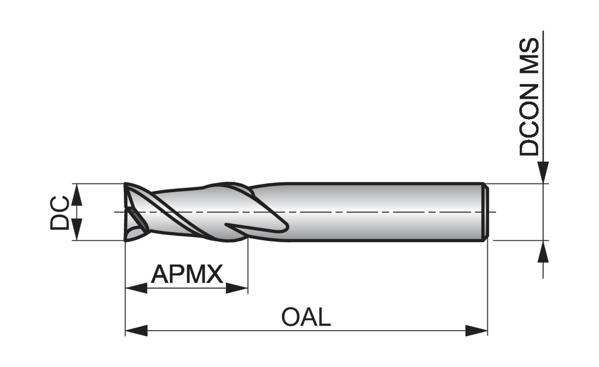 Short series end mill with 2 flutes, diameter 2.5mm with 6.5mm length of cut and 40mm overall length, according to DORMER standard with a 3mm plain shank, solid carbide with AlCrN coating, 40° helix and 10° rake angle for slot milling in steel and cast steel, ferritic, martensitic and austenitic stainless steel, cast-iron and high-temperature alloys
