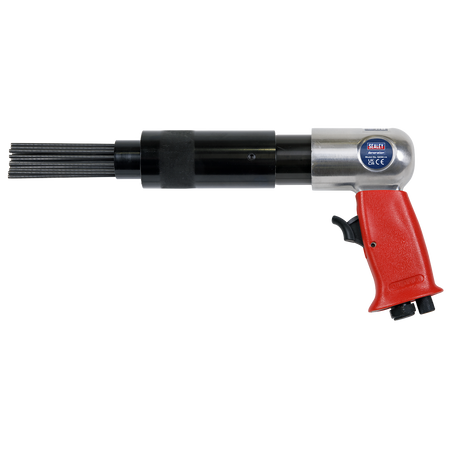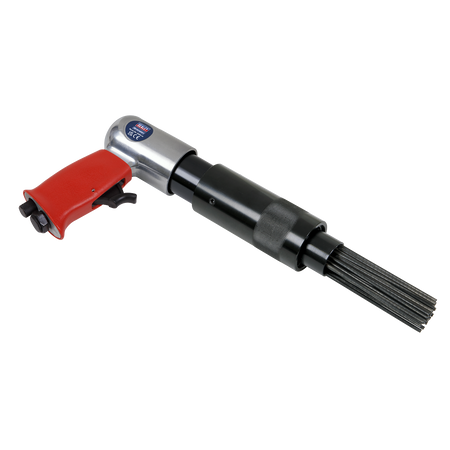 Generation series pistol type scaler suitable for cleaning heavy paint and rust scale from metal surfaces. Removable needle head allows use as a standard air hammer but requires additional chisel set and spring retainer (not included). Features variable speed trigger control. Spring retainer, needle and chisel sets available separately.