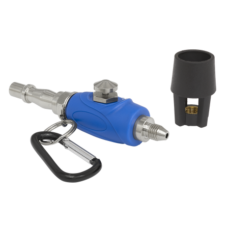Composite mini air blow gun with venturi tip for increased airflow compared to standard blow guns. Small size and detachable hook allow the blow gun to be ready to use at all times. Maximum working pressure of 90psi.