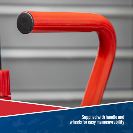 • Supplied with handle and wheels for easy manoeuvrability.
