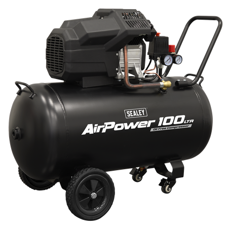 SAC10002 Air Compressor 100L V-Twin Oil Free Direct Drive 3hp