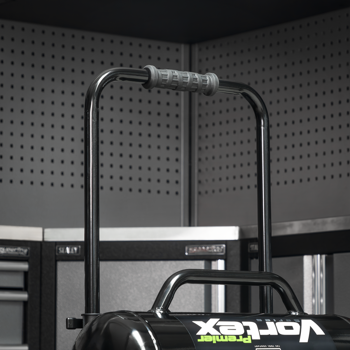 • BUILT-IN STEP - Tube chassis and painted metal step, perfect for construction and automotive applications.