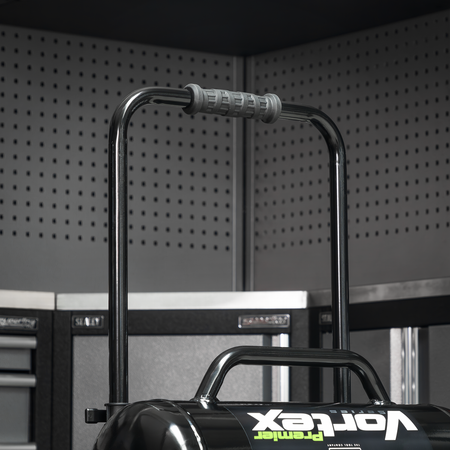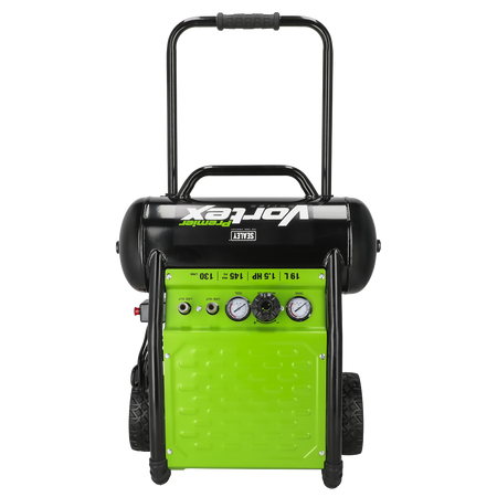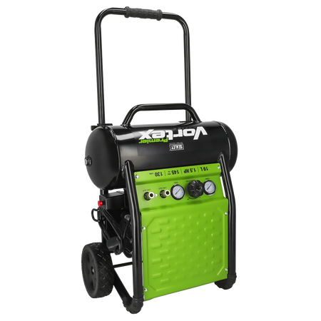 Low noise compressor runs at only 79dB(A), suitable for places where a standard compressor would disturb work or people in the vicinity. Aluminium cylinder head with cast iron cylinder gives added resistance to wear. Fitted with fully automatic pressure cut-out switch and twin gauges displaying tank and working pressures. Pump head directly coupled to heavy-duty induction motor for reliable and quiet operation. Fitted with two outputs so multiple tools can be used at once. Suitable for use with the Sealey range of air nailers. Tube chassis and painted metal step, perfect for construction and automotive applications. The benefits of oil free compressors include easy maintenance, reduced noise levels, better efficiency, quieter when running and no oil contamination in the air supply. Lightweight unit with extendable handle and solid plastic wheels with rubber grip.