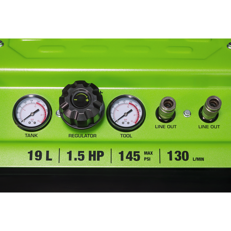 • AUTOMATIC CUT-OUT- Fitted with fully automatic pressure cut-out switch and twin gauges displaying tank and working pressures.