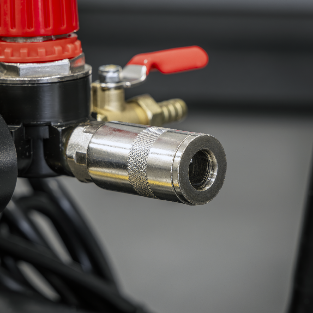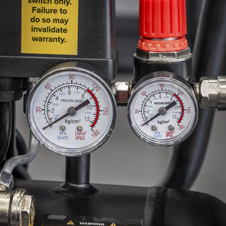 • AUTOMATIC CUT-OUT- Fitted with fully automatic pressure cut-out switch and twin gauges displaying tank and working pressures.