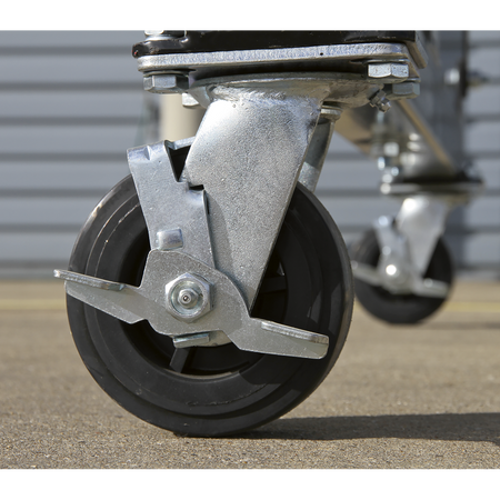 Ideal for workshops/garages where level lifting is essential. Fitted with four swivel locking castors. Gantry frame is NOT to be moved while loaded. All steel construction with 'I-beam' cross member for added strength. Height-adjustable from 2400 to 3600mm in 100mm increments. Ideal for maintenance, manufacturing, repairs and other material handling tasks. Quick assembly and disassembly for easy transport within a workplace or from site to site. Lifting tackle not included.