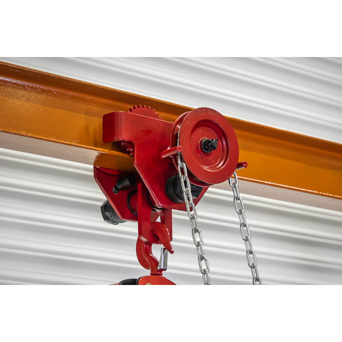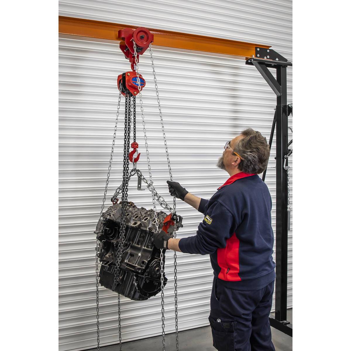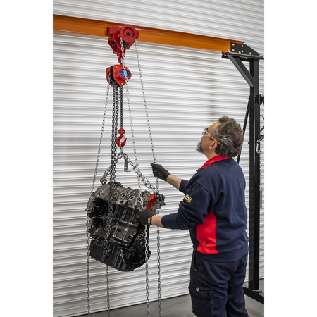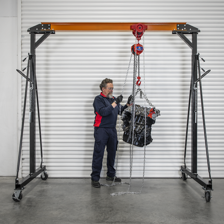 • INCLUDES TROLLEY AND CHAIN BLOCK - Geared trolley with 1000kg rated capacity for mounting the Chain Block to the Gantry. 1000kg Capacity Chain Block with mechanical load brake for safe and easy lifting.