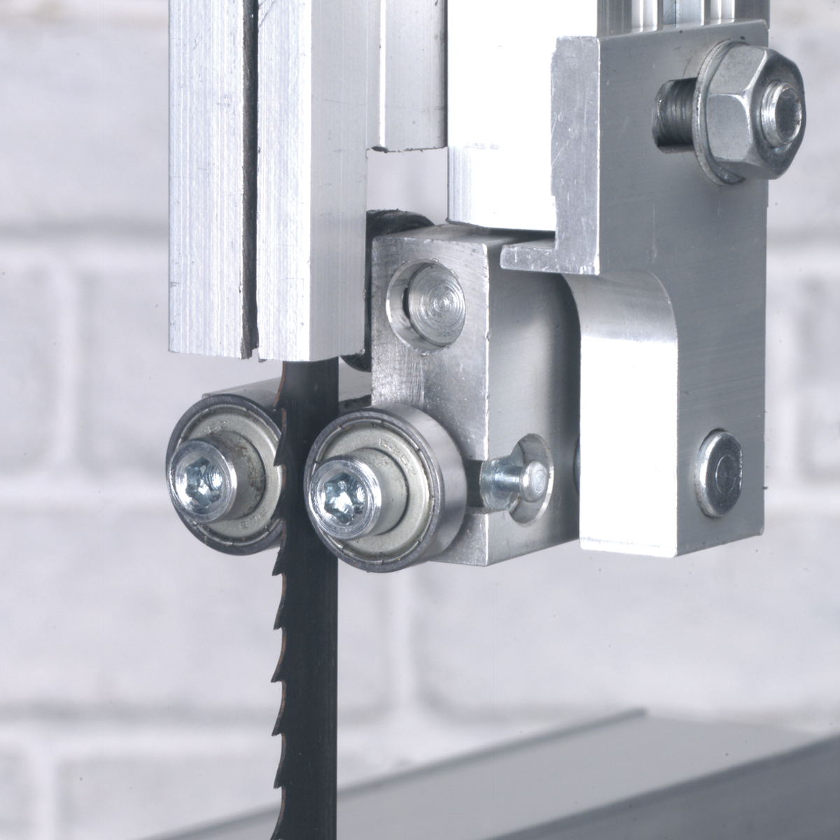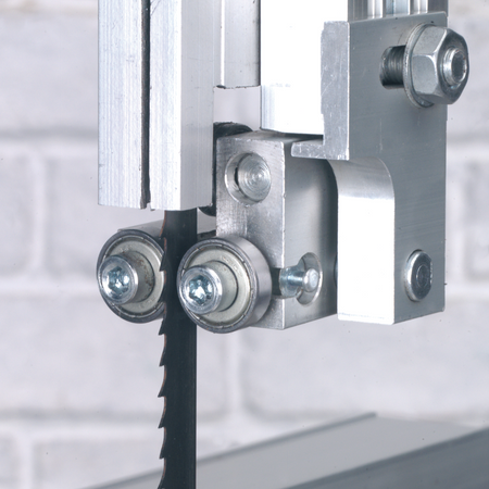 Fully approved to current CE directives. Steel chassis with locking blade wheel covers. Smooth operation by bearing-mounted blade wheels and belt drive induction motors. Micro switches prevent operation when either blade wheel cover is open. No-volt release switches prevent uncontrolled blade restart after power interruption. 2-Speed operation enables bandsaw to cut multiple types of materials. Fitted with tilting tables for cutting compound mitres. Fully adjustable blade tracking and tensioning for precise cutting action. Supplied with quick adjusting rip fence, mitre gauge, dust extraction port, blade wheel brushes and push sticks. Supplied with metal stand.