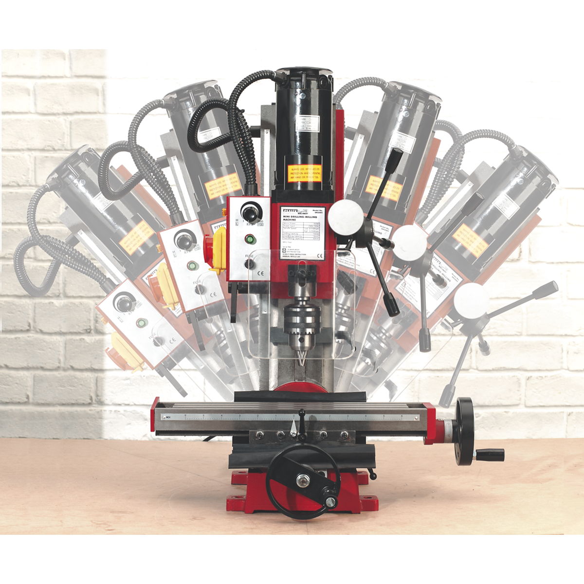 • Features include a 350W motor, variable speed drive, working table with T-slots to enable clamping of workpieces and metric graduated compound scales.