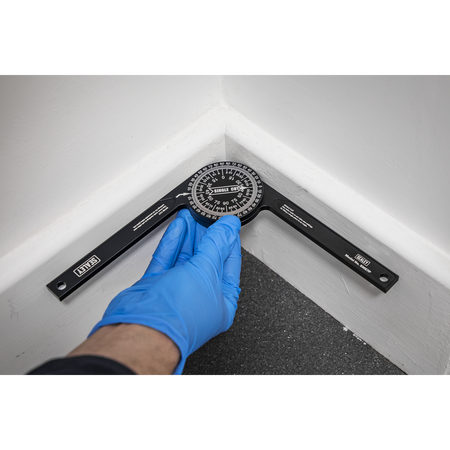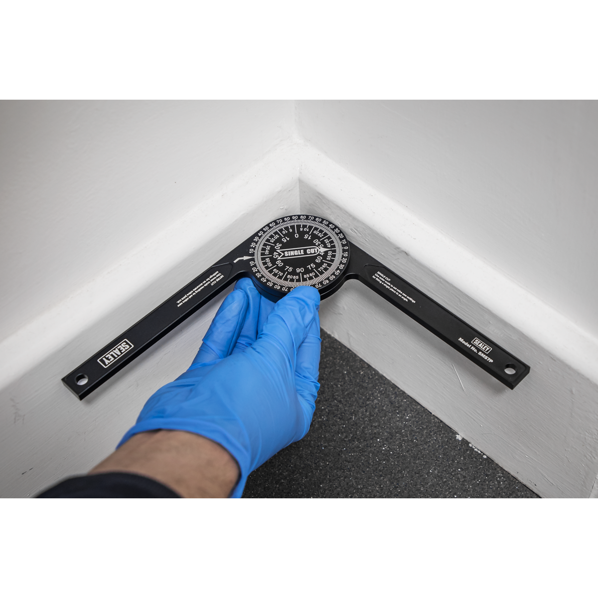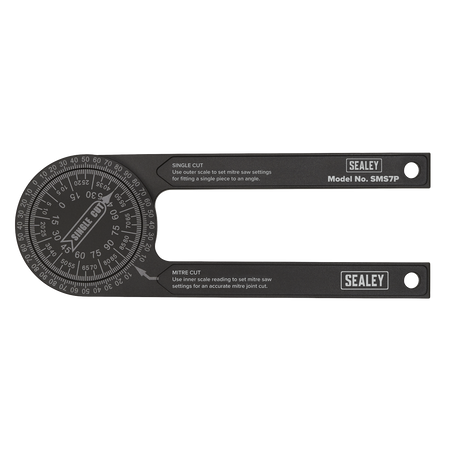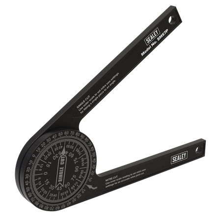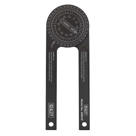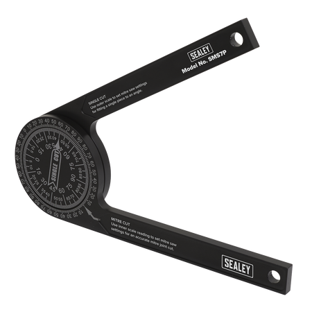 • Durable aluminium tool measures angles for mitre and single cuts.