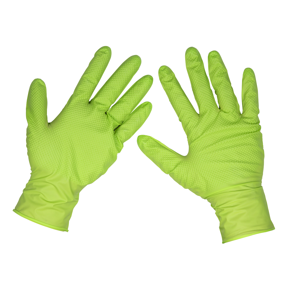 SSP54XL Diamond Grip Extra-Thick Nitrile Powder-Free Gloves Hi-Vis Green X-Large (Pack 50)