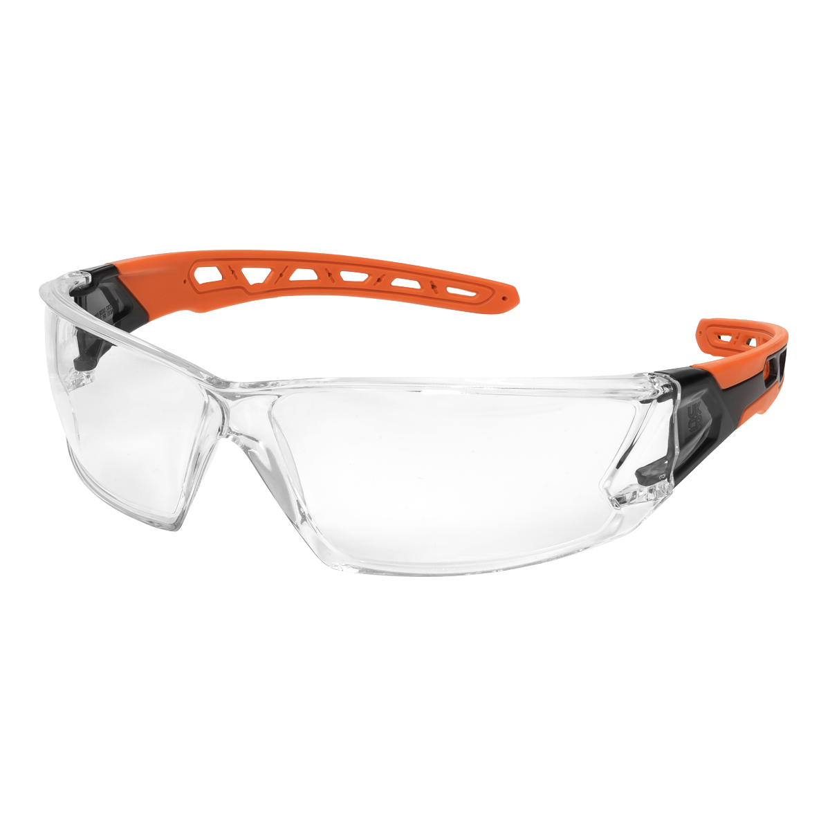 Conforms to CE standards - BS EN 166/F. Modern, lightweight wraparound design, with flexible TPR arms, offers added protection and increased user comfort. Polycarbonate anti-scratch lenses.