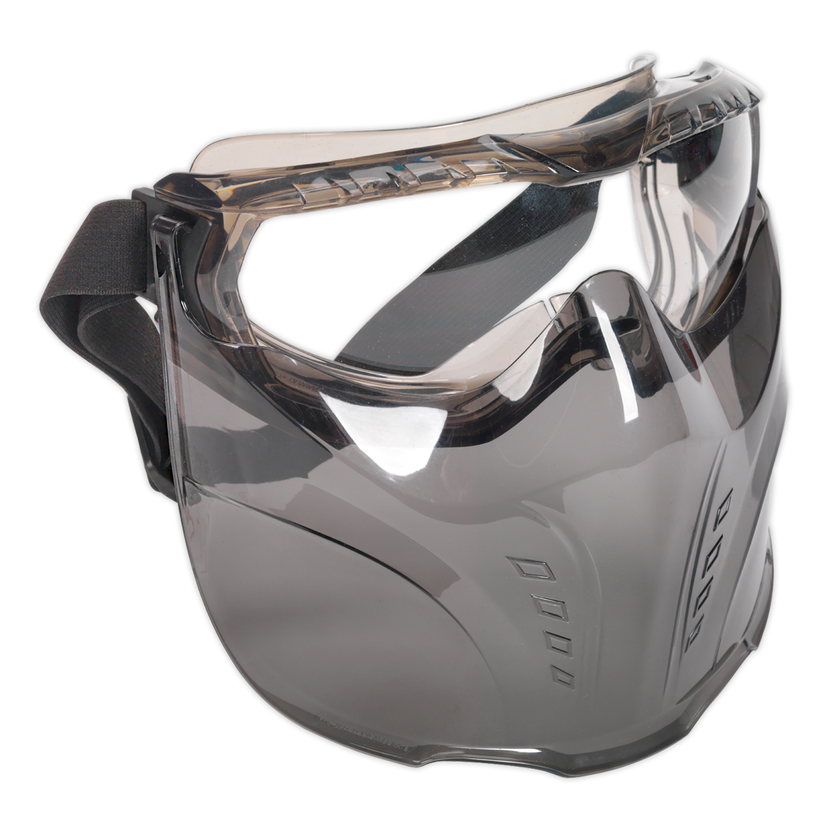 BS EN 166 BT 3 - Manufactured from polycarbonate for superior durability and resistance. Offers full face protection with an increased range of mobility compared to a standard face protector. Curved face shield conforms to the shape of the face offering improved protection. Detachable indirect vented goggles to allow for extra versatility. Features a wide-angle curved lens for enhanced visibility. Adjustable headband with soft PVC frame provides added comfort.,• BS EN 166 BT 3 - Manufactured from polycarbonate for superior durability and resistance.