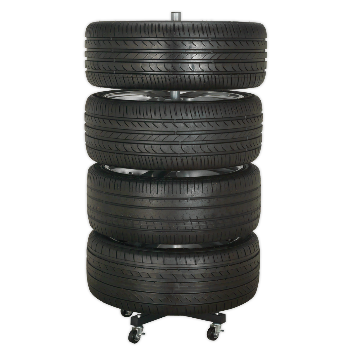 Completely freestanding wheel storage trolley for all types of wheels with rim size over Ø225mm. Easy to assemble. The rack has four locking castors for easy manoeuvring around the garage. Eliminates tyre distortion due to loss of tyre pressure. Supplied with rim protecting supports.