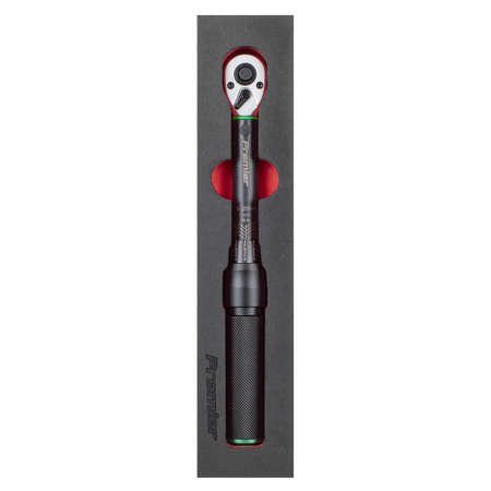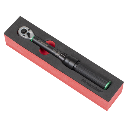 Flip reverse Chrome Vanadium steel ratchet head with a smooth action mechanism. Scale graduated in Nm and lb.ft. Calibration tolerance in accordance with BS EN ISO 6789-1:2017. Wrenches are individually tested to standards with ±4% accuracy and each wrench is issued with an individually numbered test certificate. Aluminium knurled handle for comfort and control. Supplied in an EVA foam storage tray.