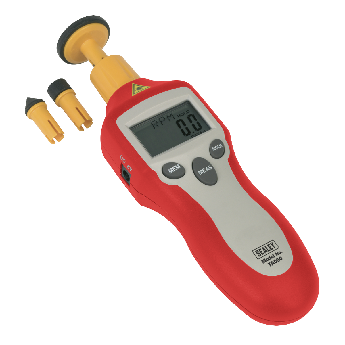 Professional quality laser instrument for fast and accurate measurement of rotational speed with or without contact. Will also measure total revolutions, frequency, surface speed and distance. 10 Selectable data set memories each with maximum, minimum and average or single value reading, as appropriate. Supplied with reflective tape, for non-contact measurement, and three heads for contact measurement. Powered by 9V battery (supplied) and has jack socket for 6V DC supply.,• Professional quality laser instrument for fast and accurate measurement of rotational speed with or without contact.
