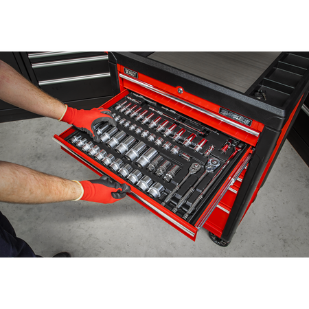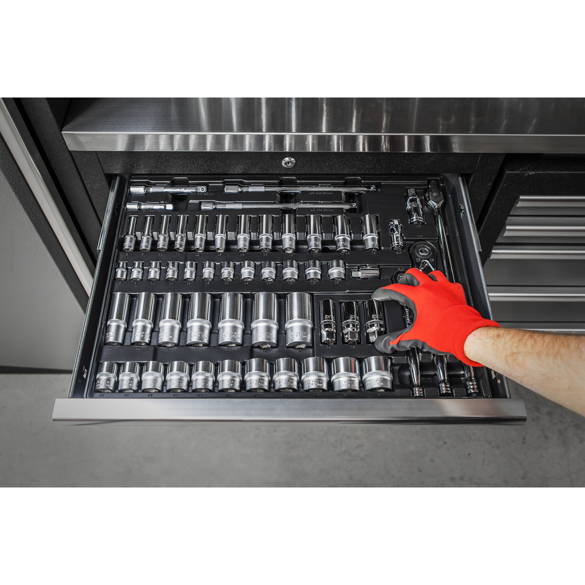 • Tool Tray with 55pc 3/8" and 1/2"Sq Drive Socket Set.