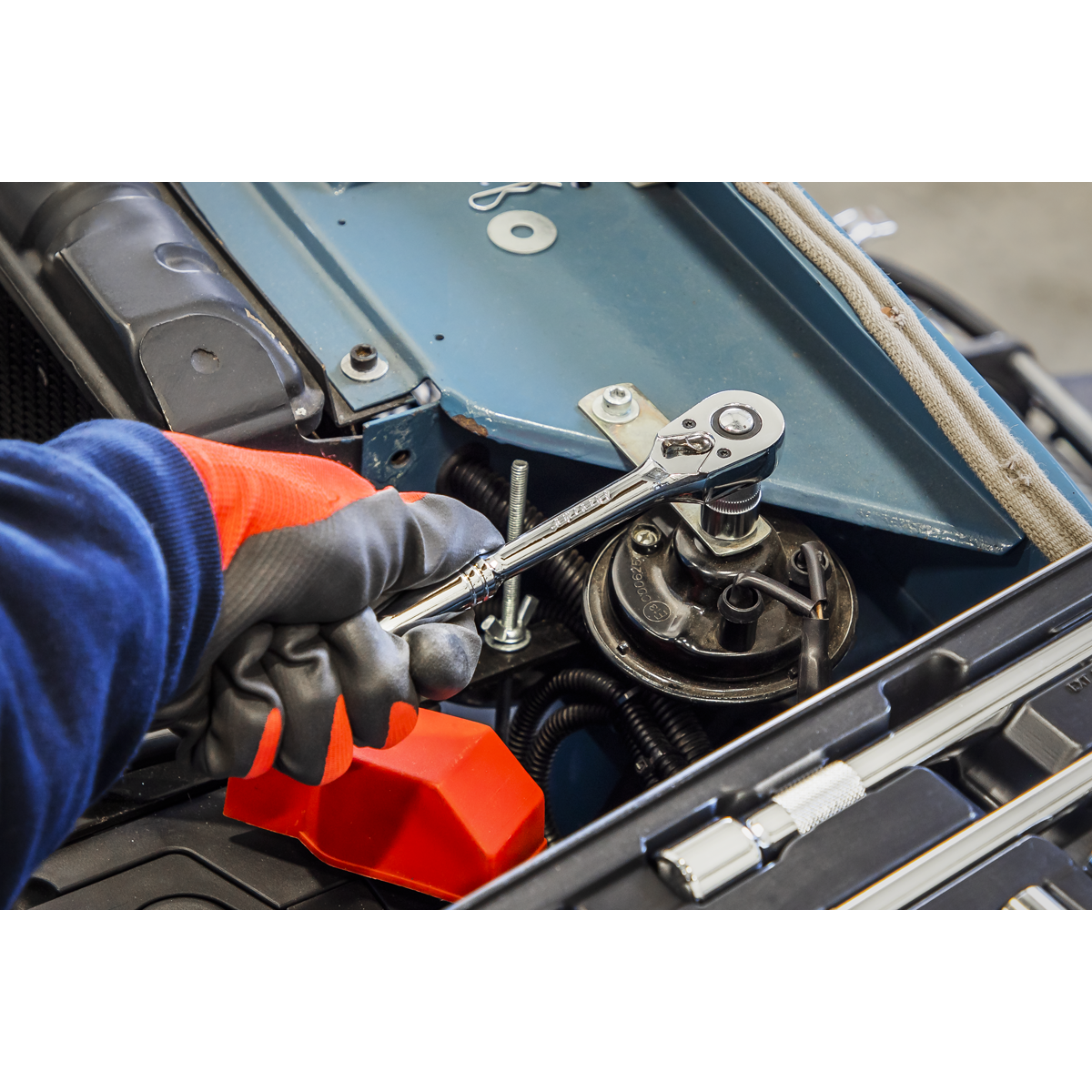 - Contents 3/8"Sq Drive Sockets; 8, 9, 10, 11, 12, 13, 14, 15, 16, 17, 18, 19mm, 3/8"Sq Drive Deep Sockets; 8, 9, 10, 11, 12, 13, 14, 15, 16, 17, 18, 19mm, 1/2"Sq Drive Sockets; 20, 21, 22, 23, 24, 25, 26, 27, 28, 30, 32mm, 1/2"Sq Drive Deep Sockets; 21, 22, 24, 27, 28, 30, 32mm, Spark Plug Sockets; 16, 18, 21mm, 3/8"Sq Drive Flip Reverse Ratchet Wrench, 1/2"Sq Drive Flip Reverse Ratchet Wrench, Universal Joints; 3/8" & 1/2"Sq Drive, 3/8"Sq Drive Extension Bars; 75, 250mm, 1/2"Sq Drive Extension Bars; 125, 250mm, 380mm 1/2"Sq Drive Breaker Bar, 1/2"(F)-3/8"(M) Sliding T-Bar Adaptor