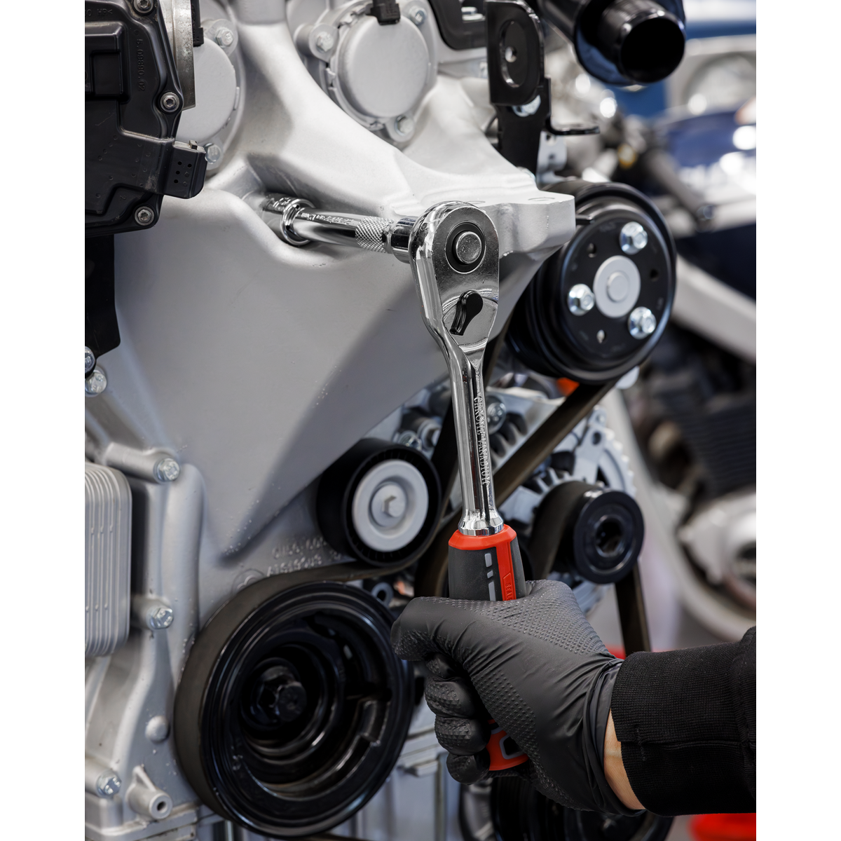 • 22PC SOCKET SET - Standard Sockets; 10, 11, 12, 13, 14, 15, 16, 17, 18, 19, 21, 22, 24, 27, 30, 32mm, 90-Tooth Flip Reverse Ratchet Wrench, Extension Bars; 75, 125, 250mm, 3/8"(F) - 1/2"(M) Adaptor, Universal Joint.