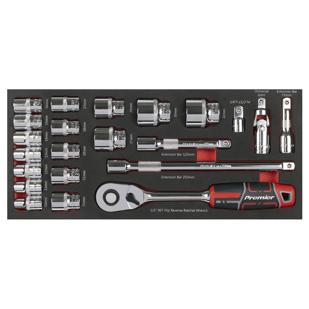 TBT42 Socket Set with Tool Tray 1/2"Sq Drive 22pc