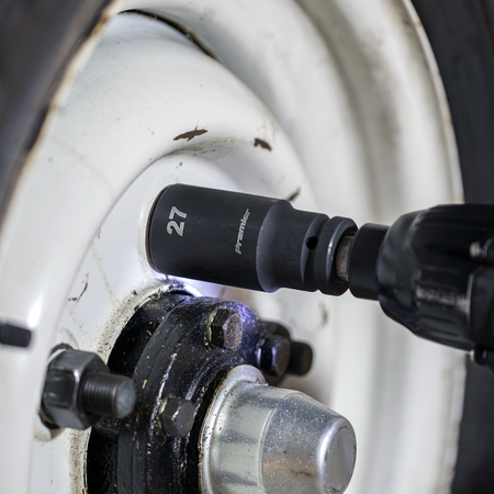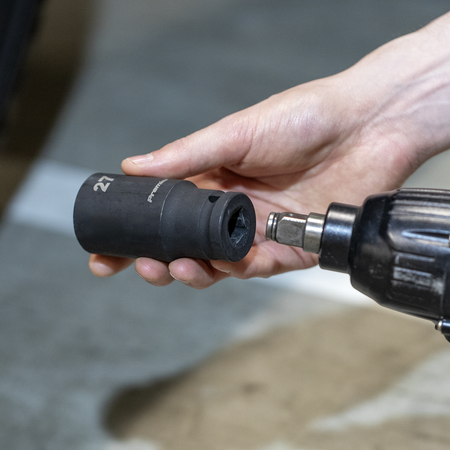 • 22PC IMPACT SOCKET SET - Standard Sockets; 10, 11, 12, 13, 14, 15, 16, 17, 18, 19, 21, 22, 24, 27, 30, 32mm, Extension Bars; 75, 150, 250mm, Adaptors; 1/2"(F) x 3/8"(M), 1/2"(F) x 3/4"(M), Universal Joint.