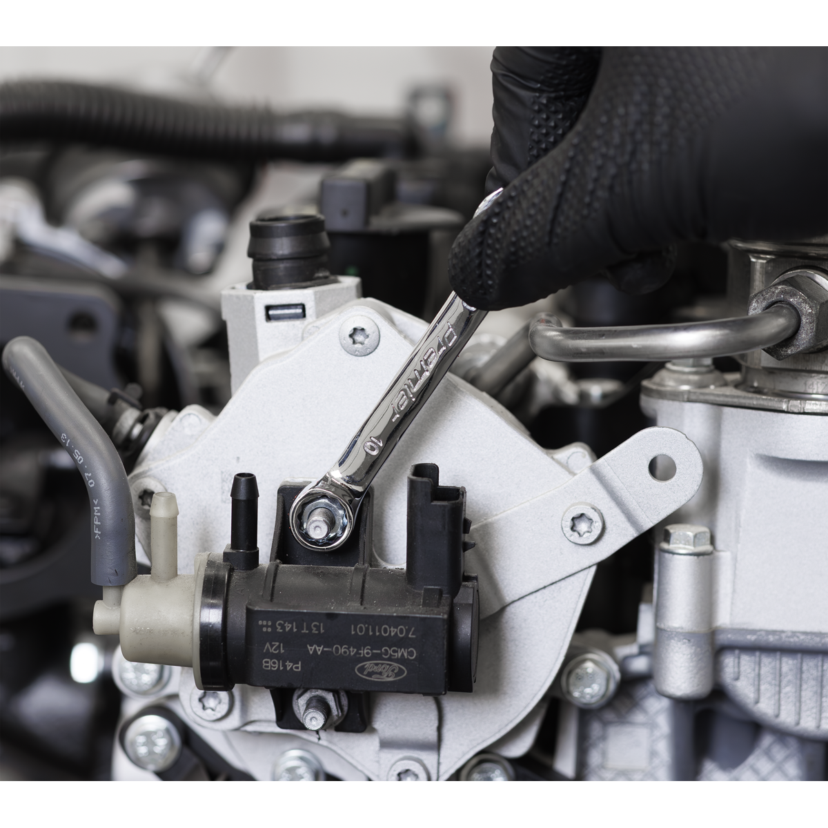 Stubby Combination; 10, 11, 12, 13, 14, 15, 16, 17, 18, 19mm, TRX-Star*; E6 x E8, E10 x E12, E14 x E18, E20 x E24, 3/8”Sq Drive Crow’s Foot; 10, 11, 12, 13, 14, 15, 16, 17, 18, 19mm.